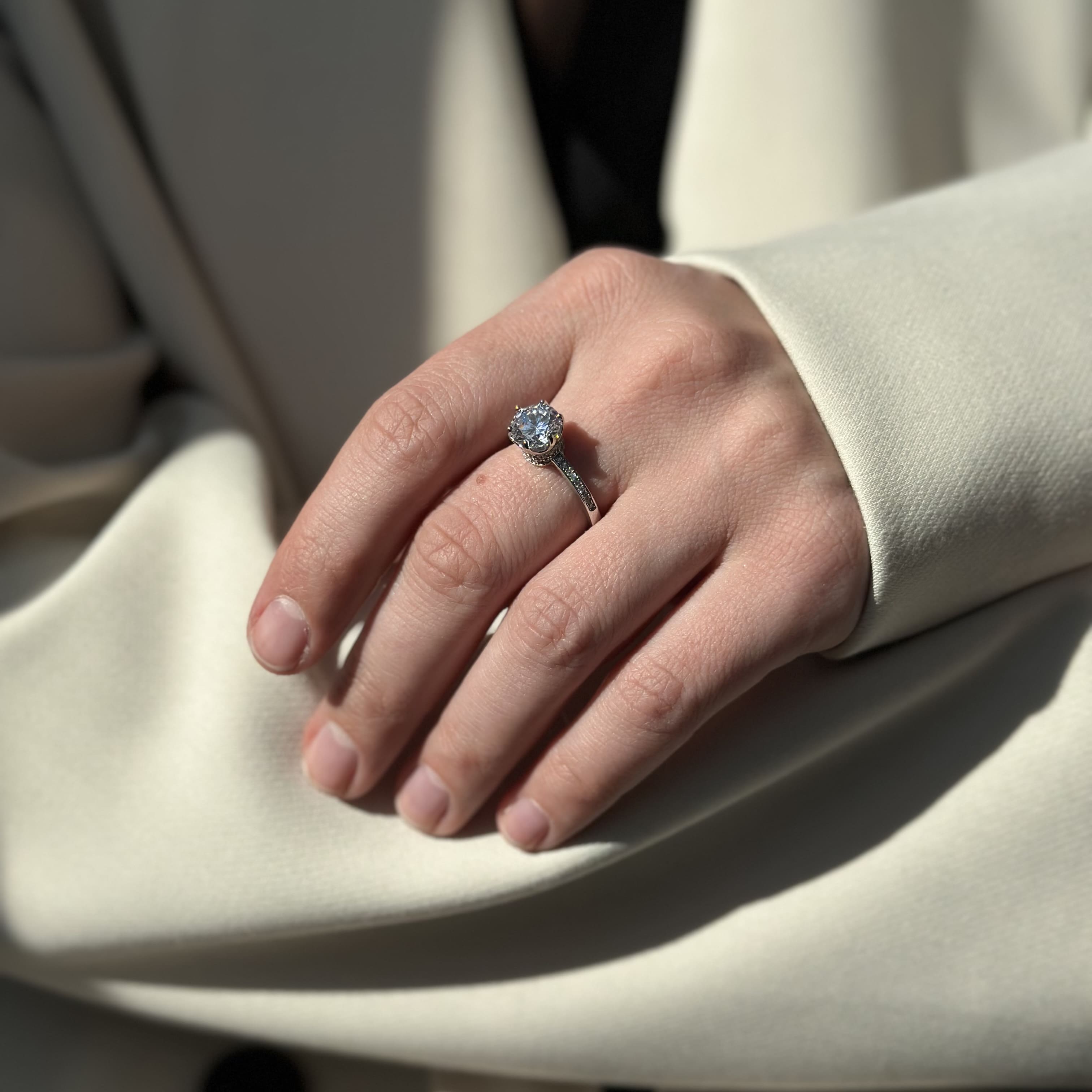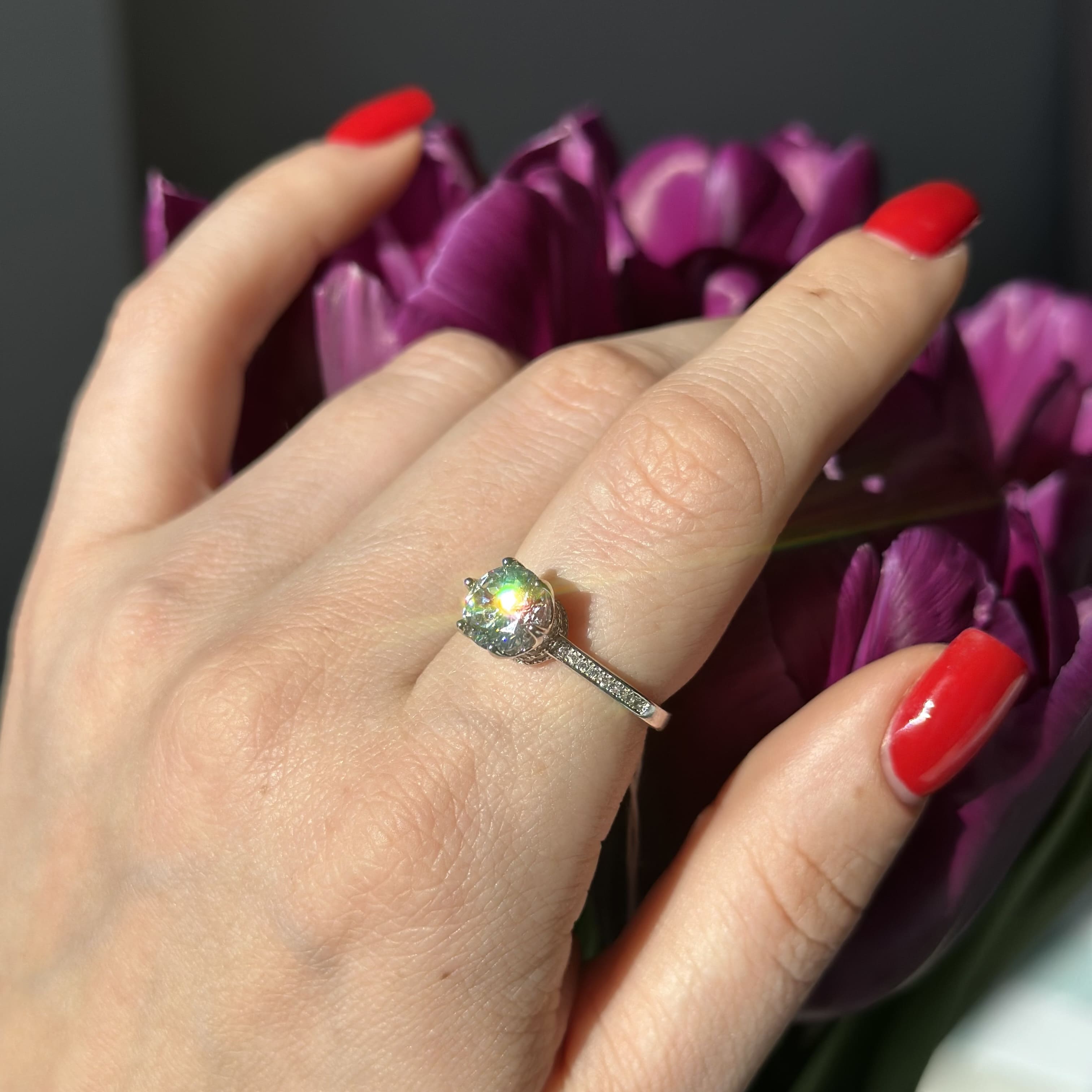 Срібна каблучка Корона з фіанітами