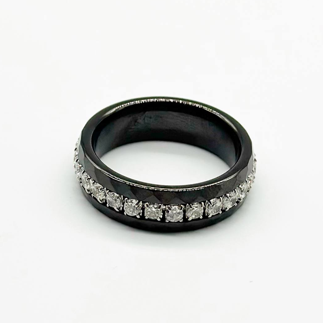 Срібна каблучка зі вставкою фіаніт/кераміка