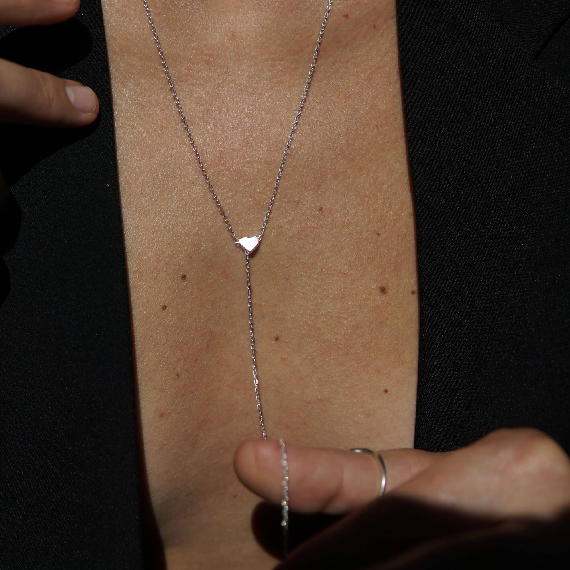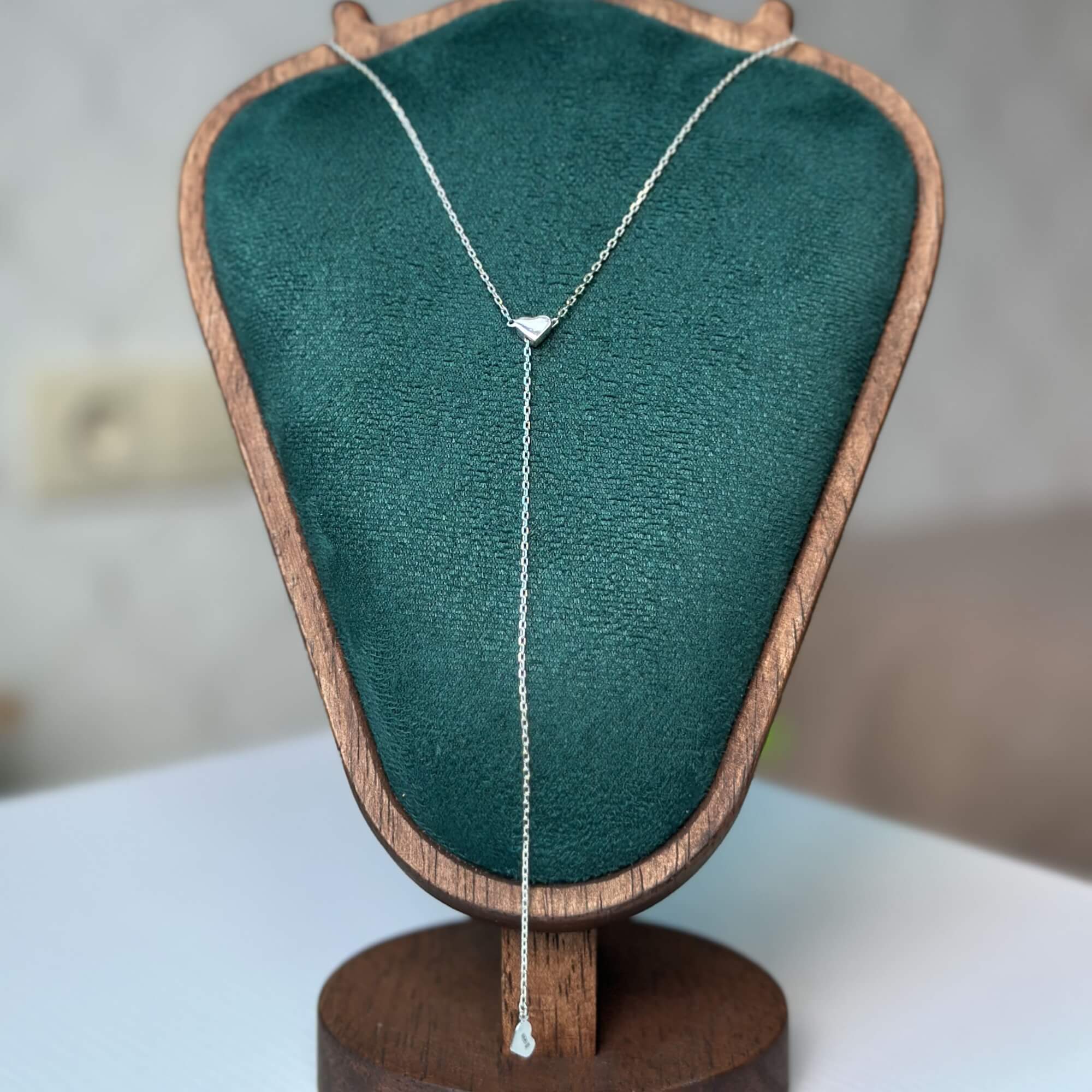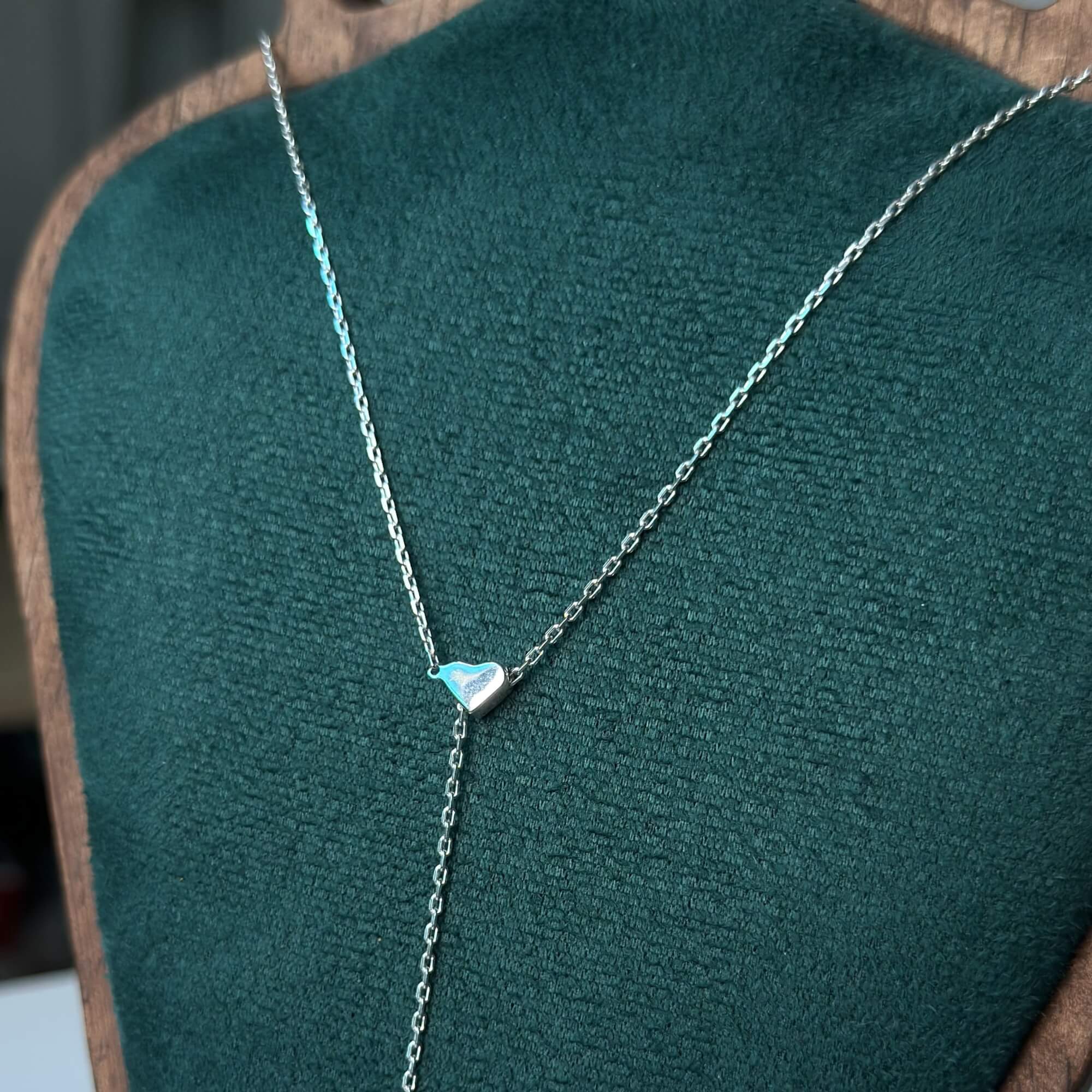 Срібна підвіска-краватка з сердечком, що регулюється — це прикраса, яка поєднує романтичну символіку та сучасну універсальність. Її дизайн натхненний формою краватки, що елегантно спадає вздовж шиї, витягує силует і додає образу вишуканої вертикальної лінії. Центральний акцент — мініатюрне сердечко, яке м’яко вловлює світло та привертає погляд.