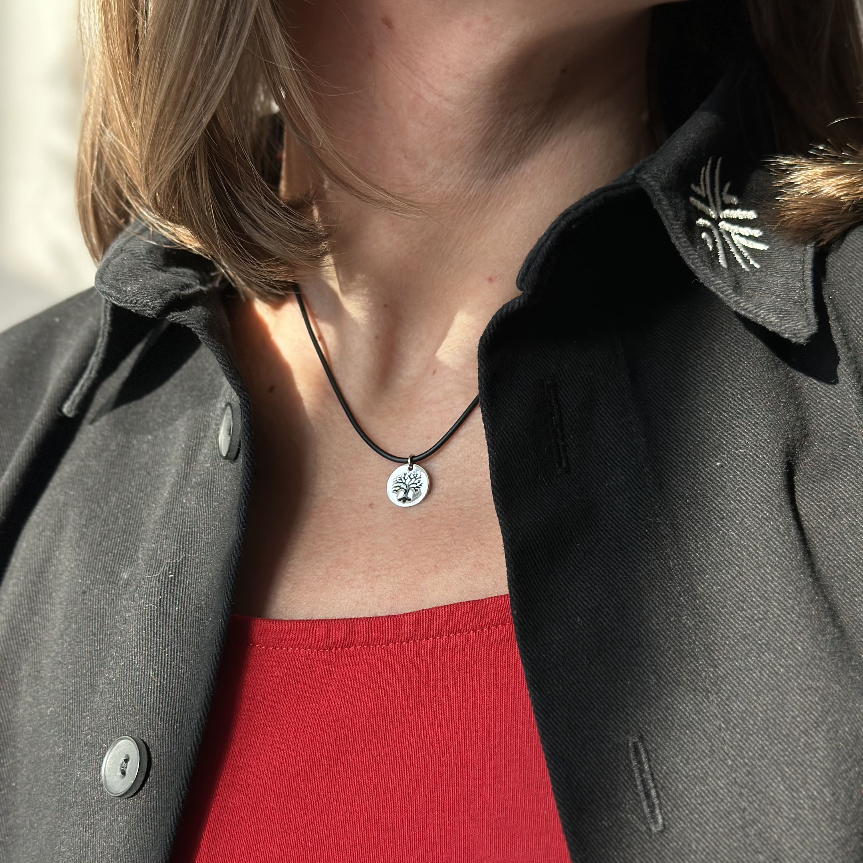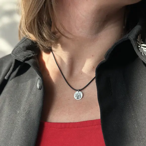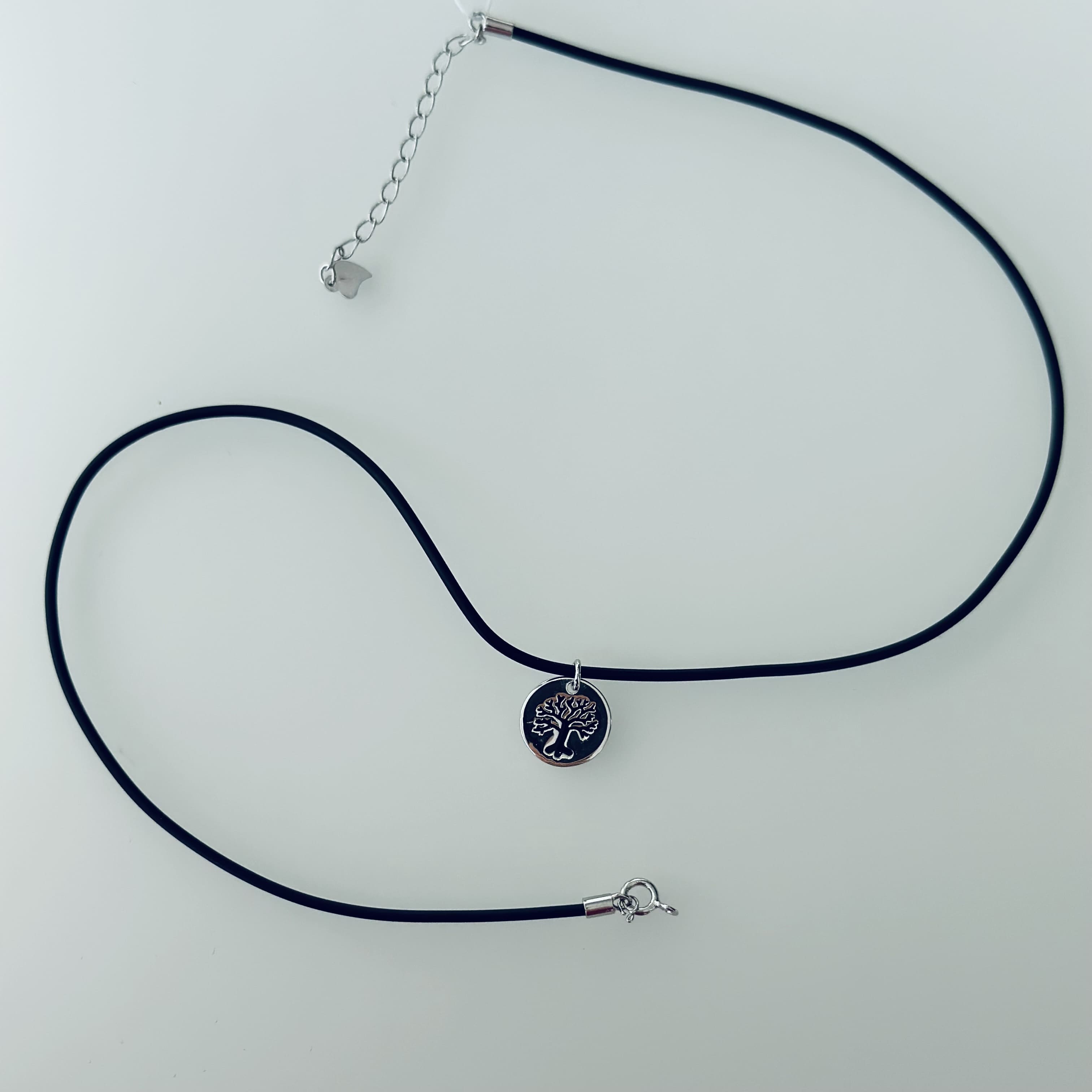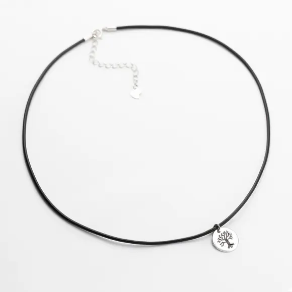 Каучукова нитка з срібною застібкою та підвіскою дерево життя