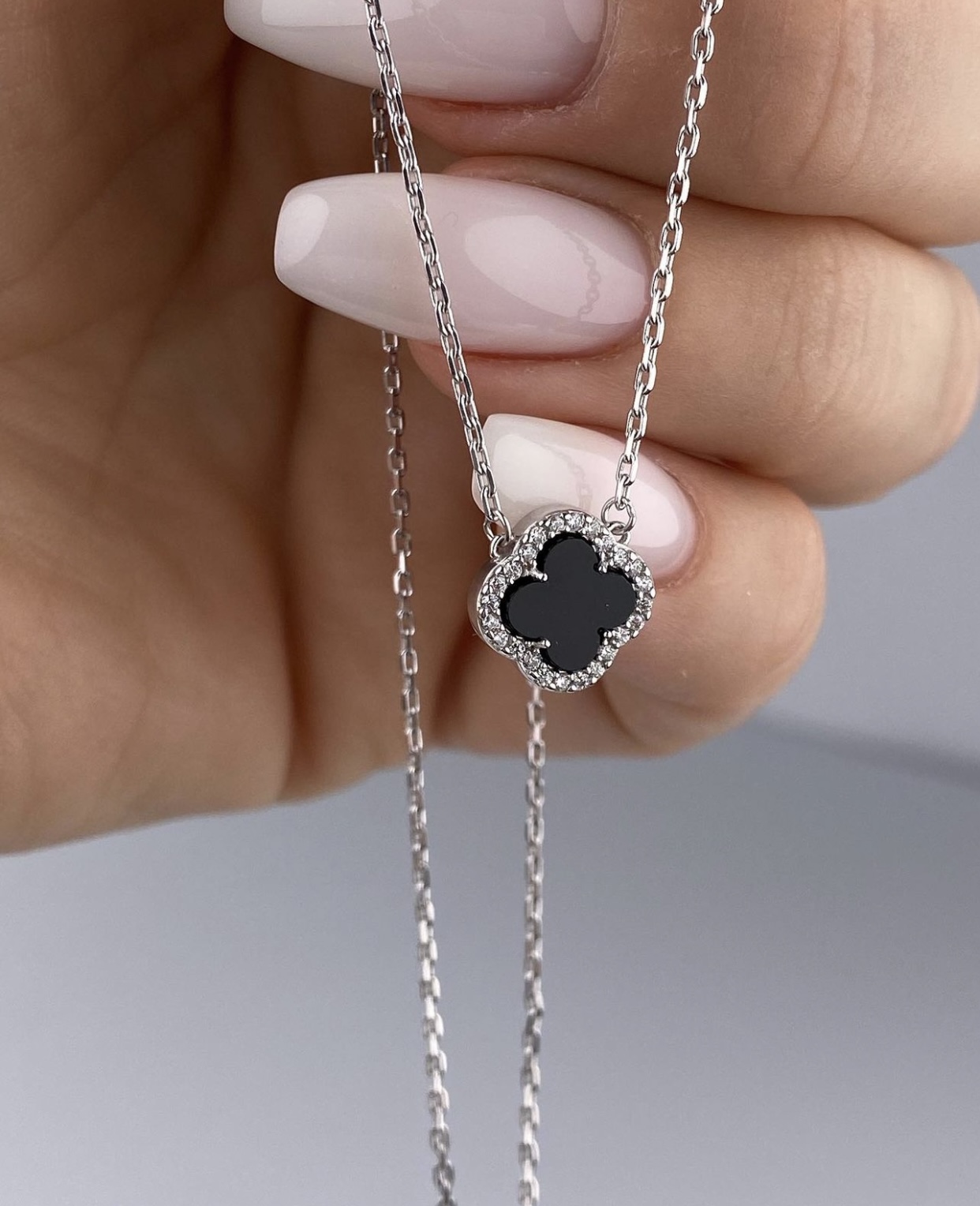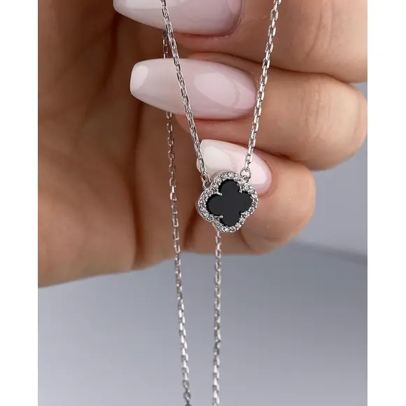 Срібне кольє Ван Кліф міні з паве