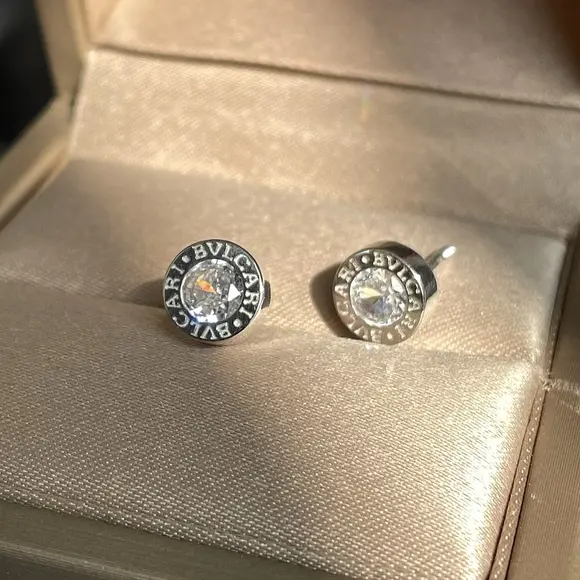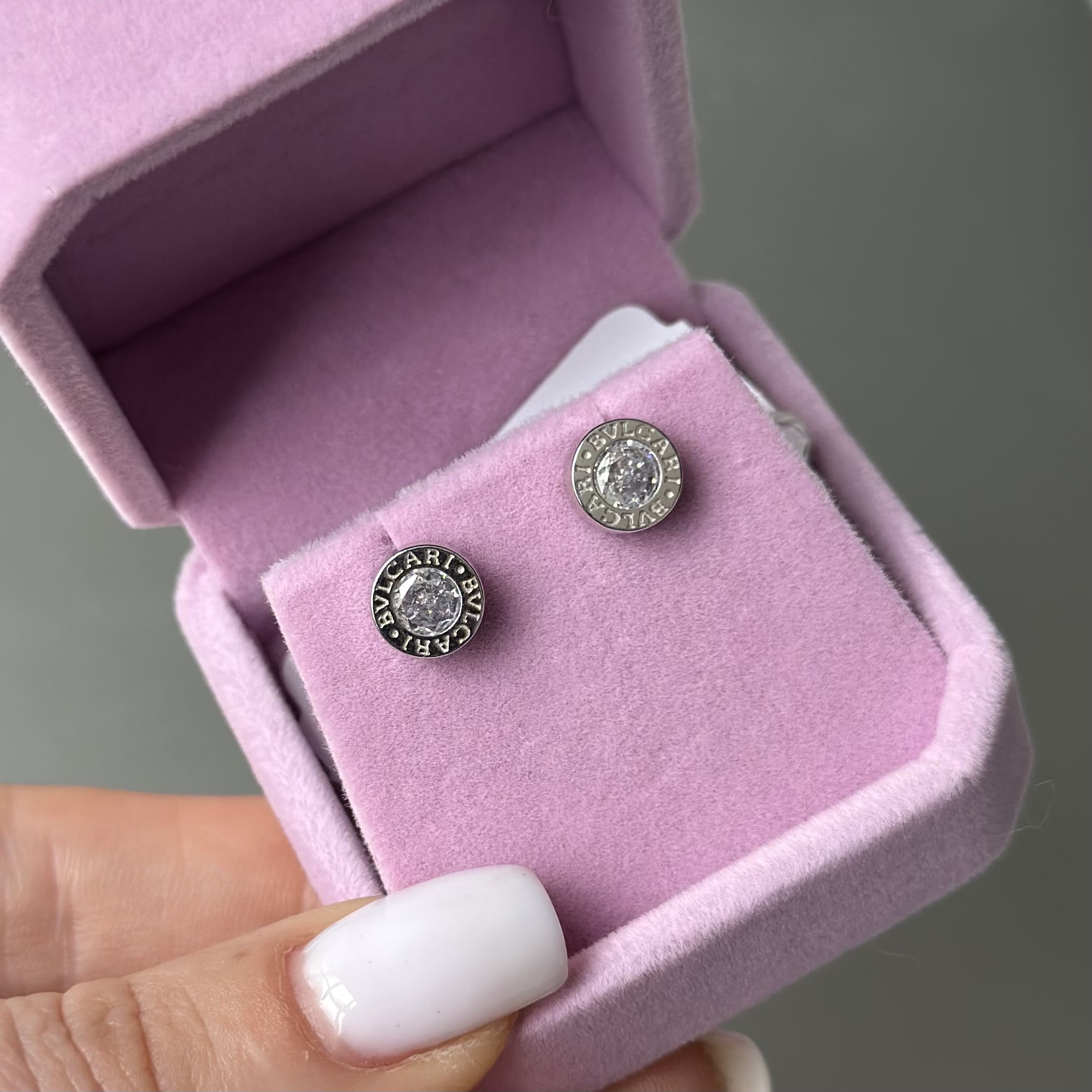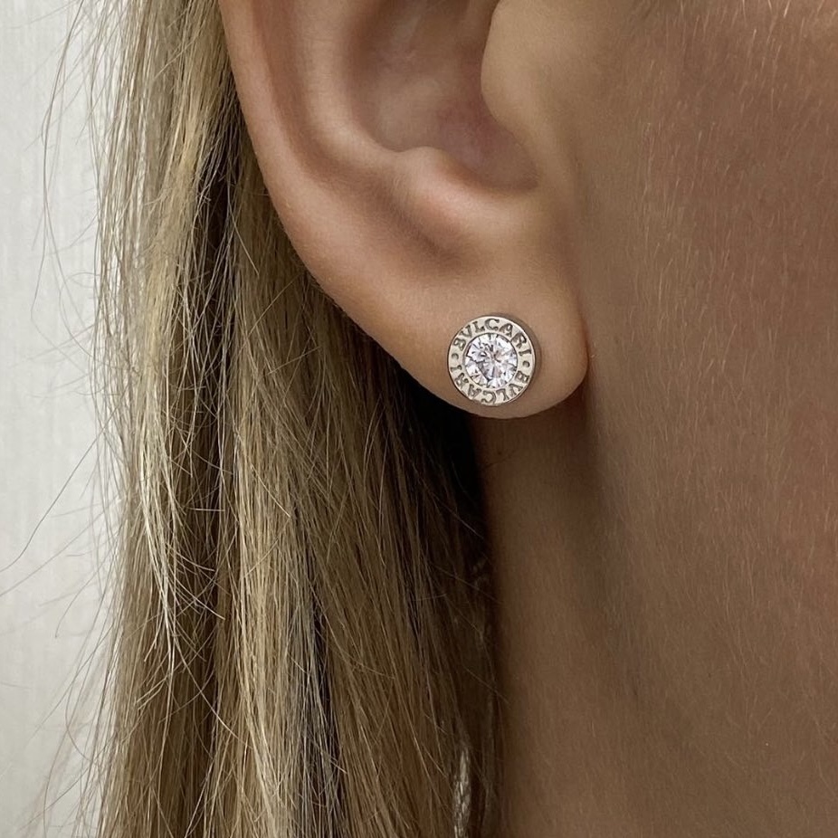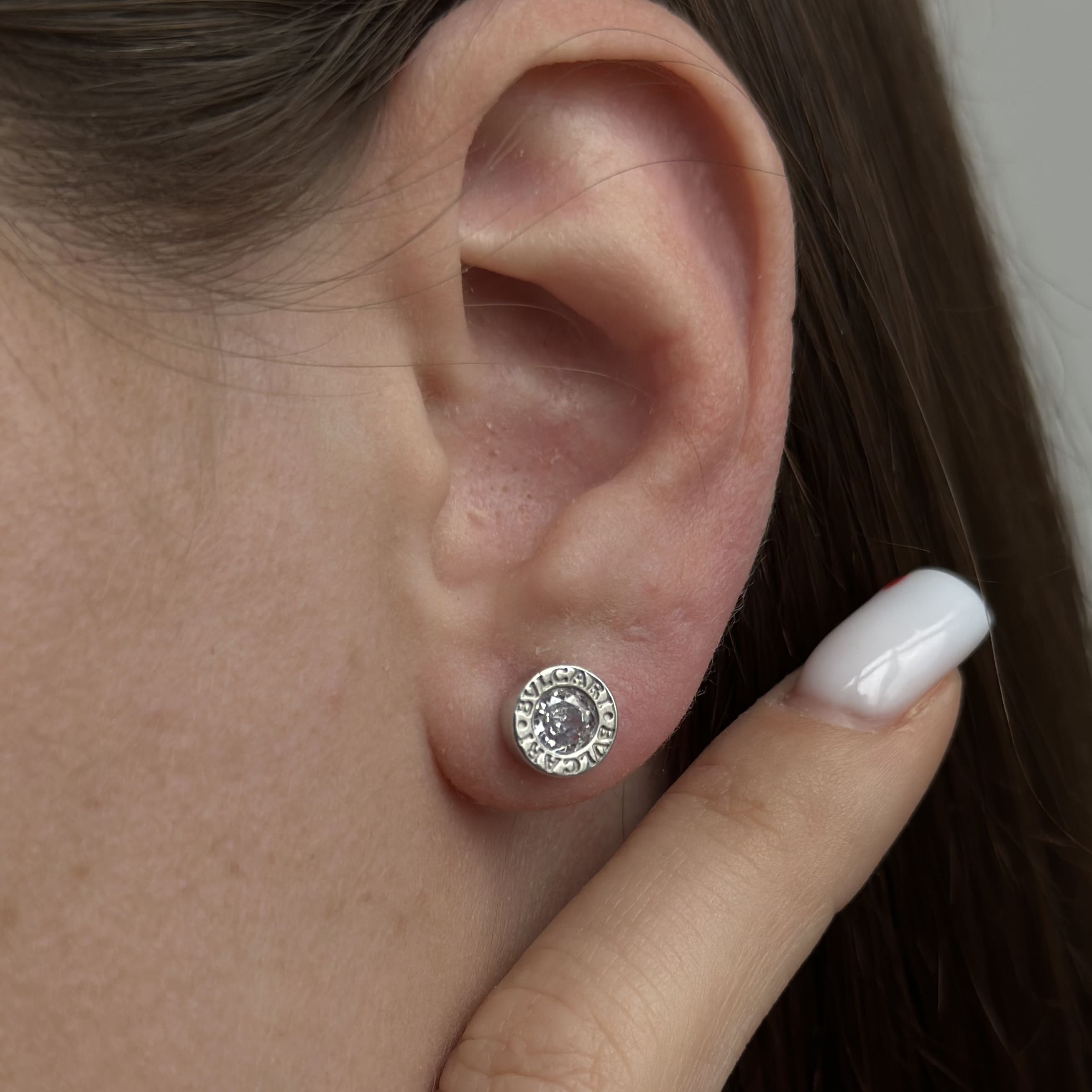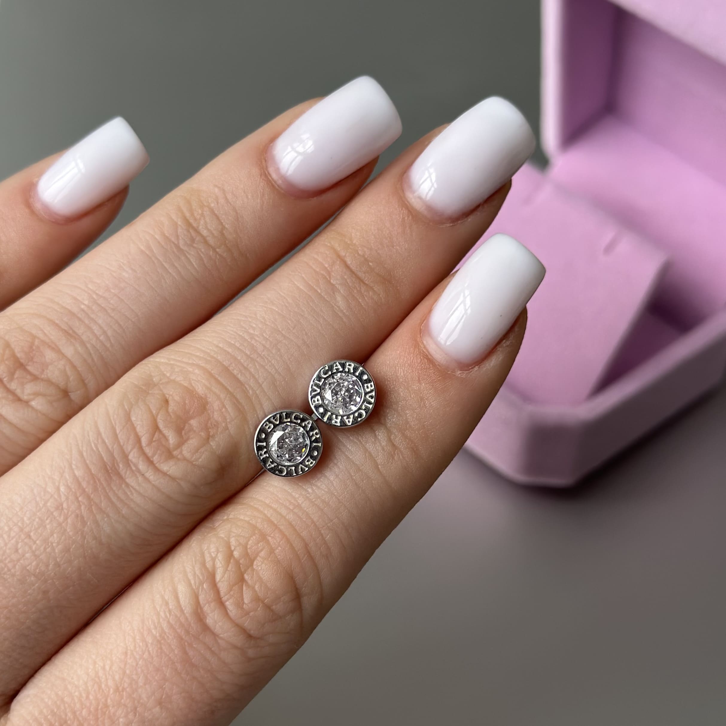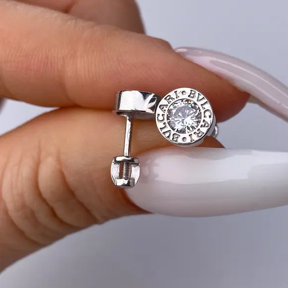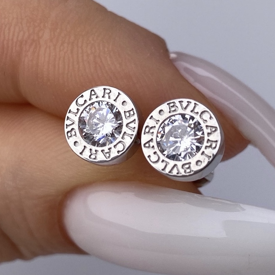 Срібні пусети Bvlgari білий камінчик
