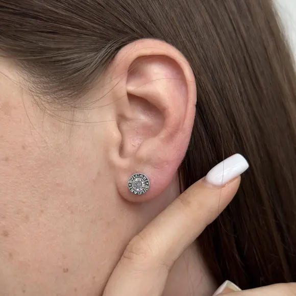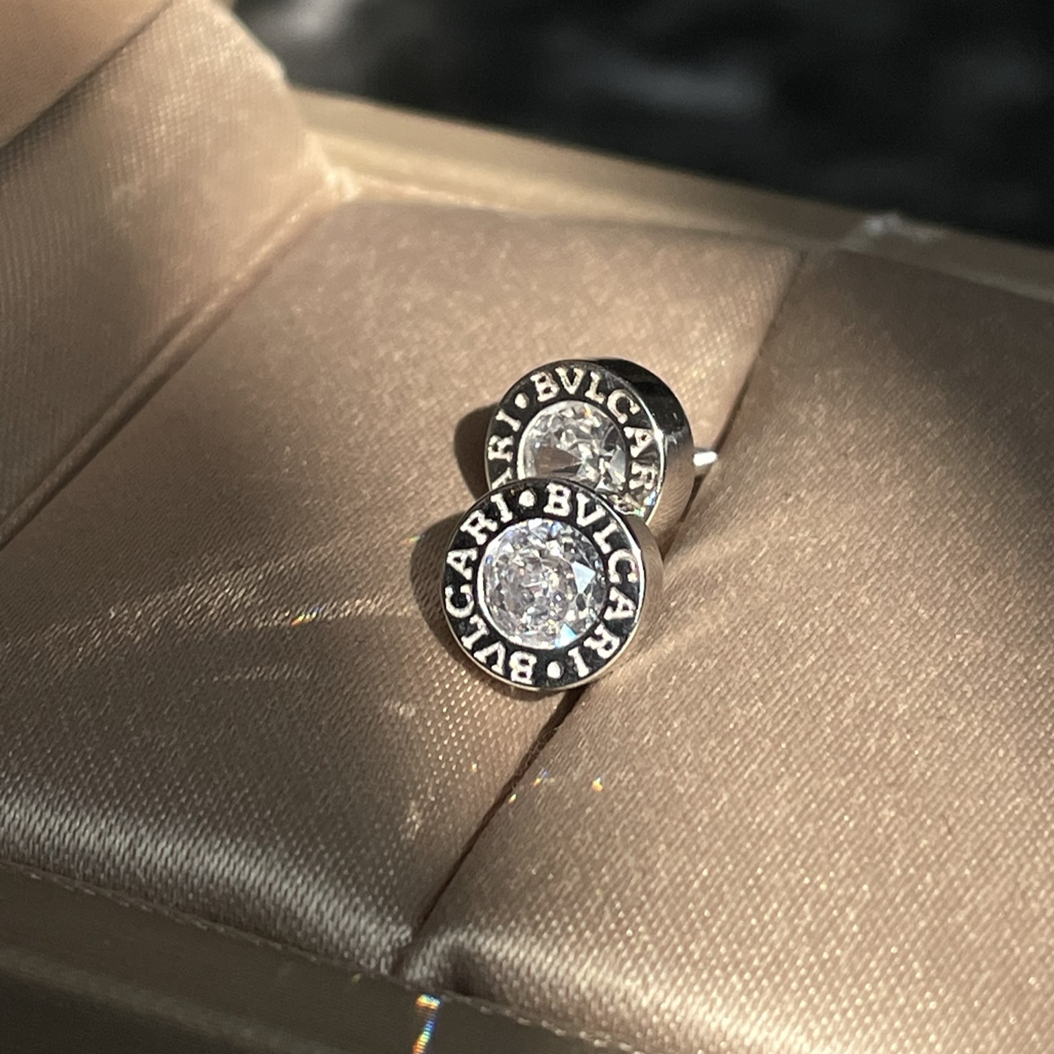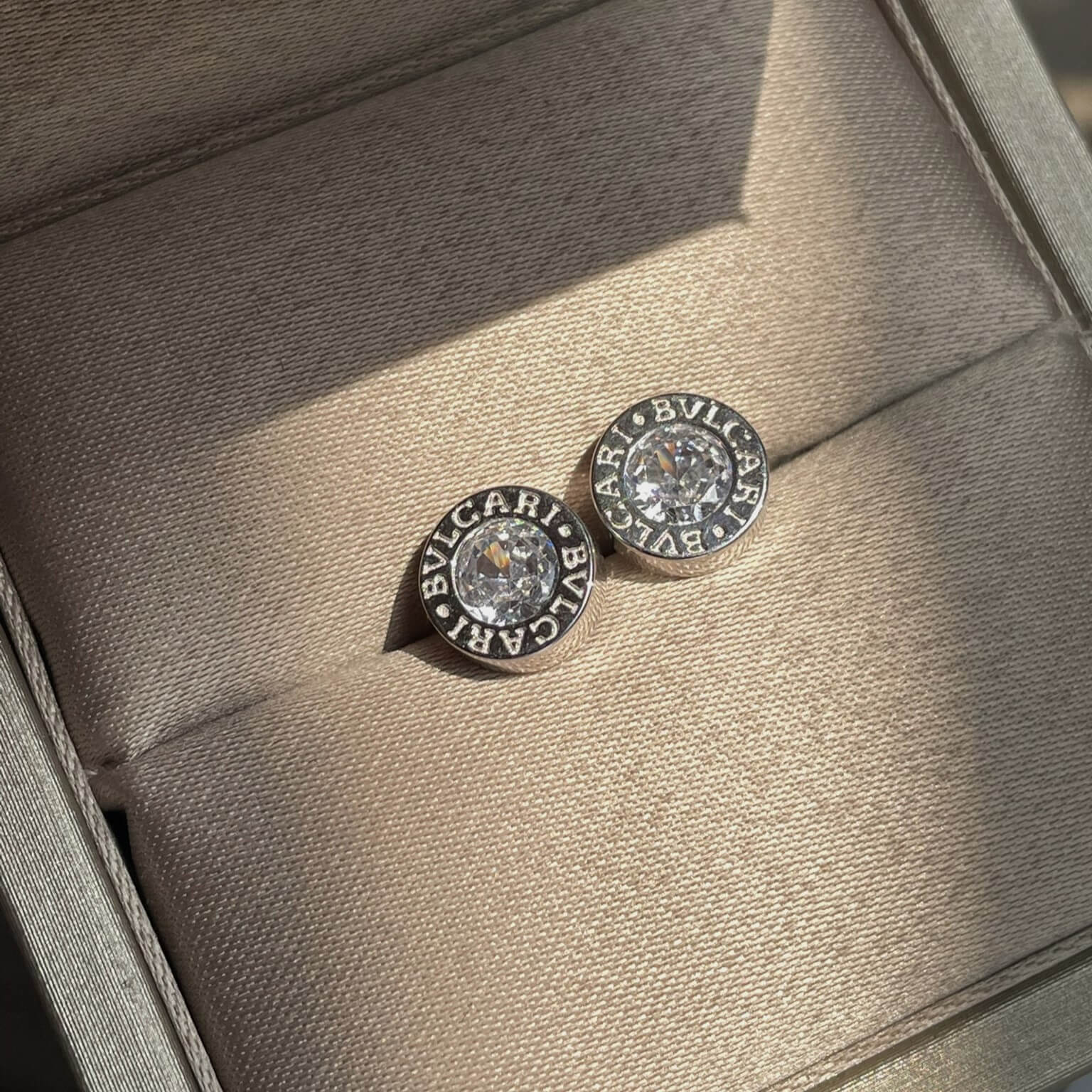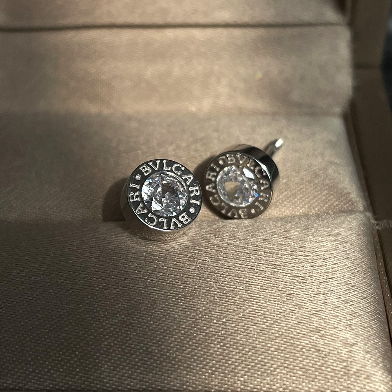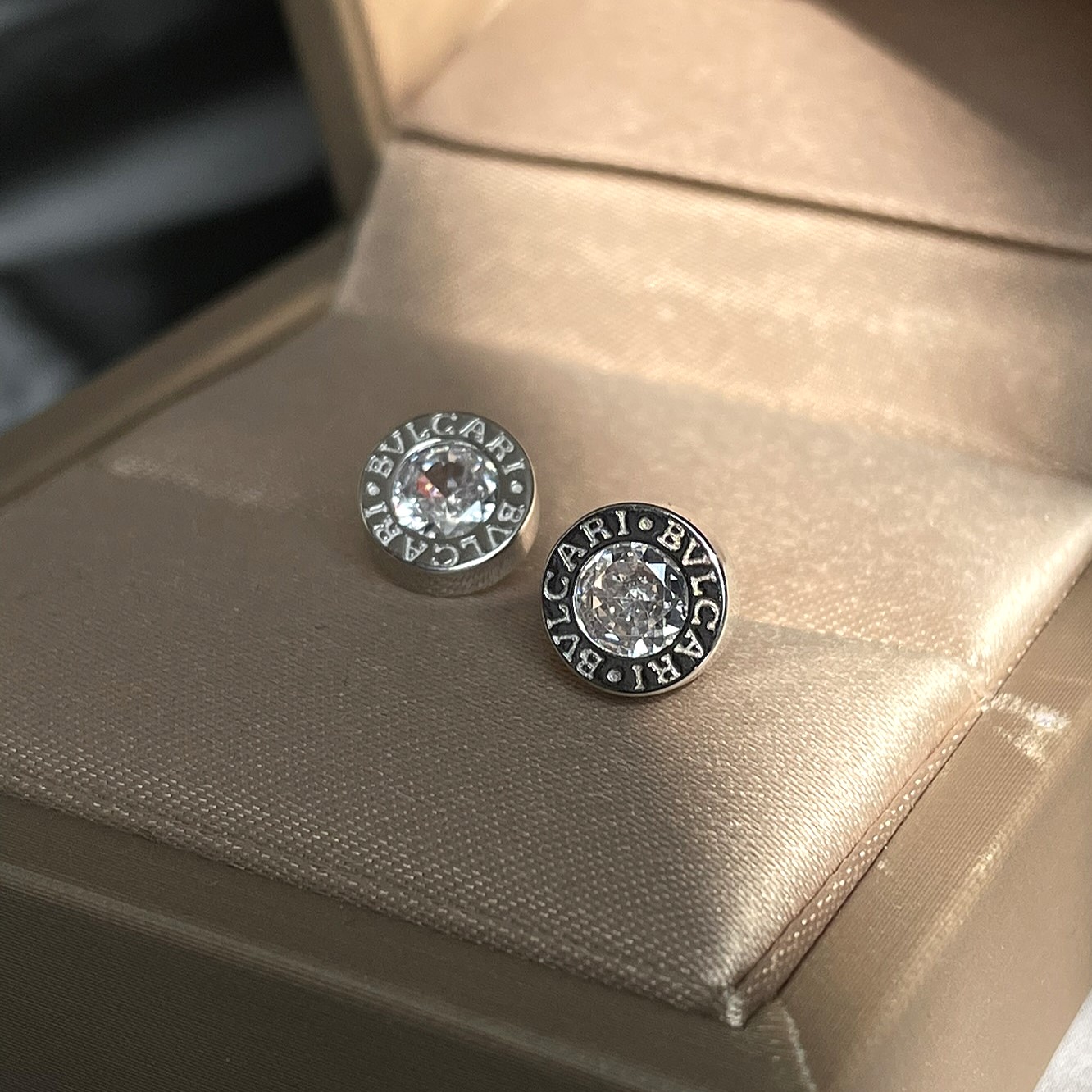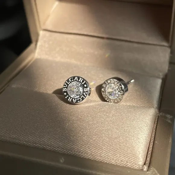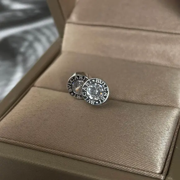 Срібні пусети Bvlgari білий камінчик