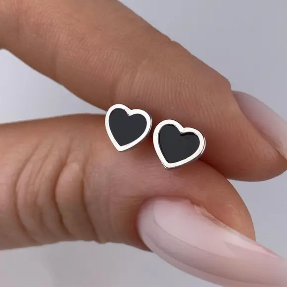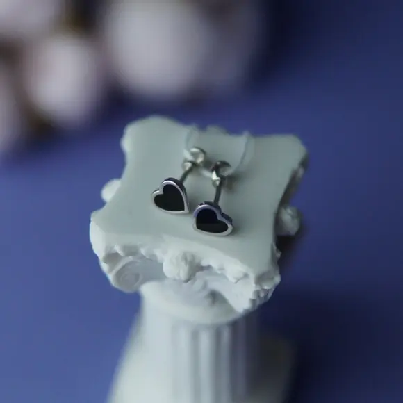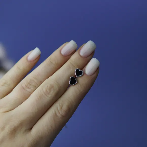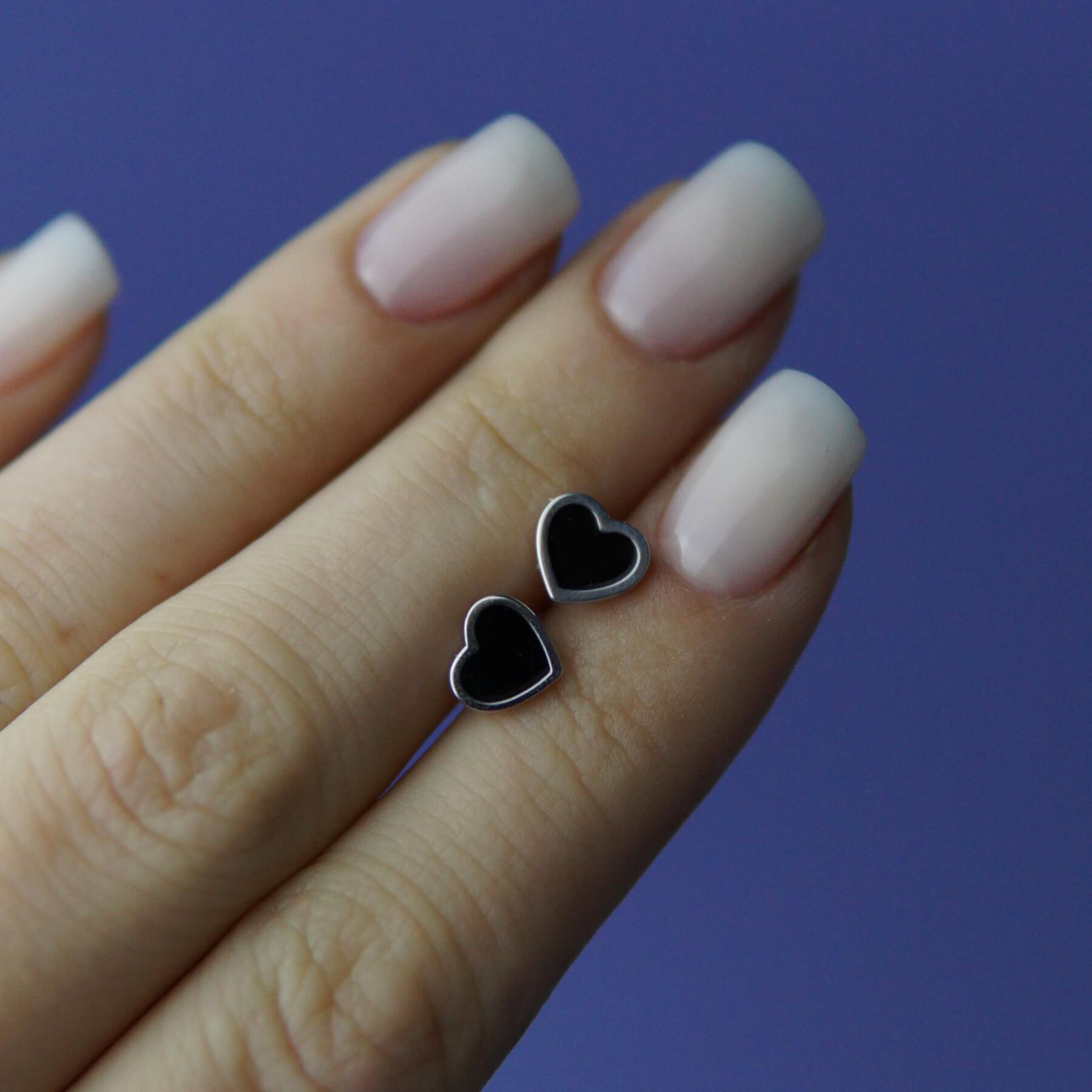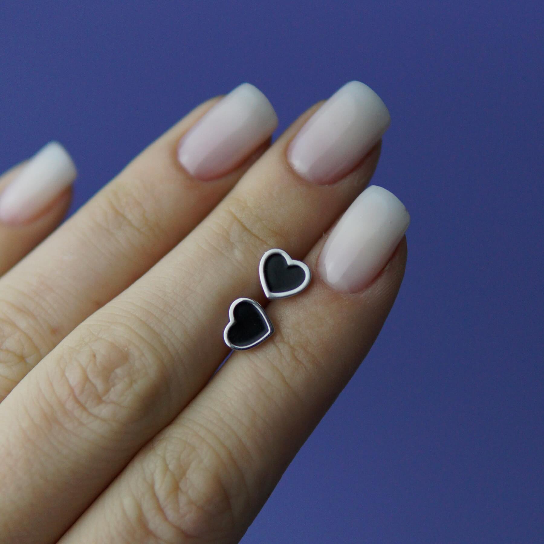 Срібні пусети чорні серця