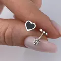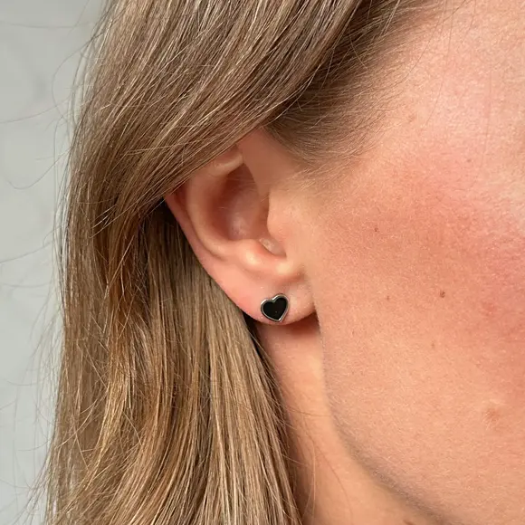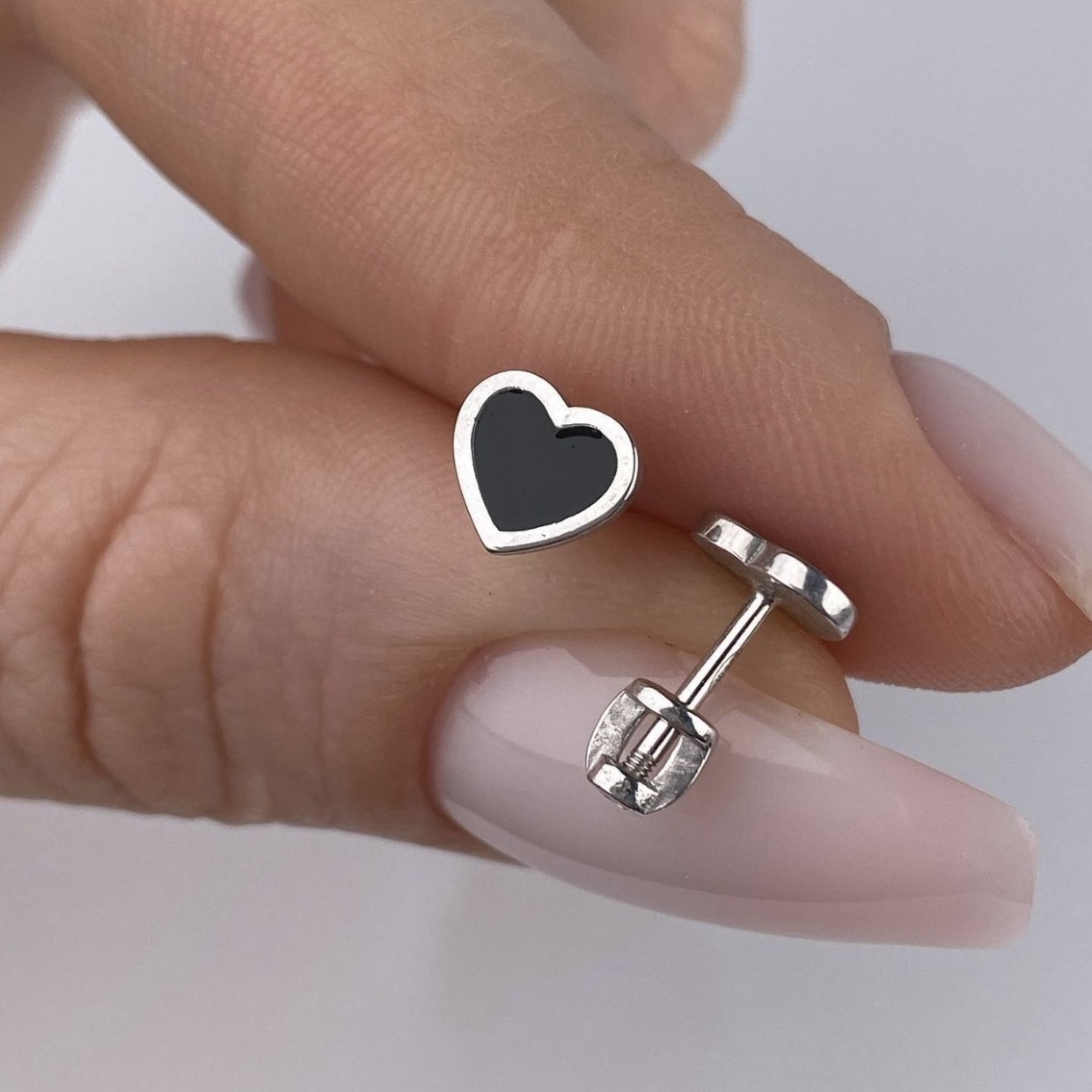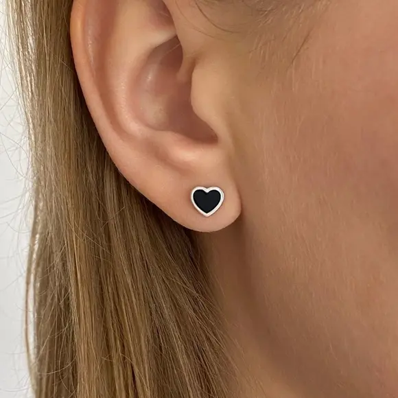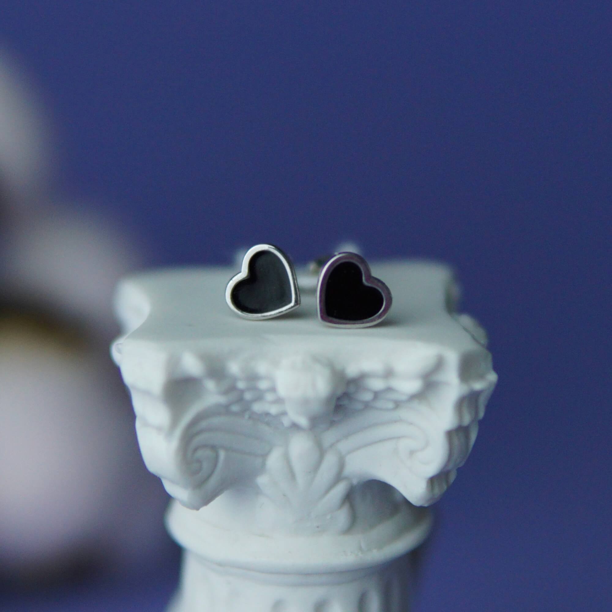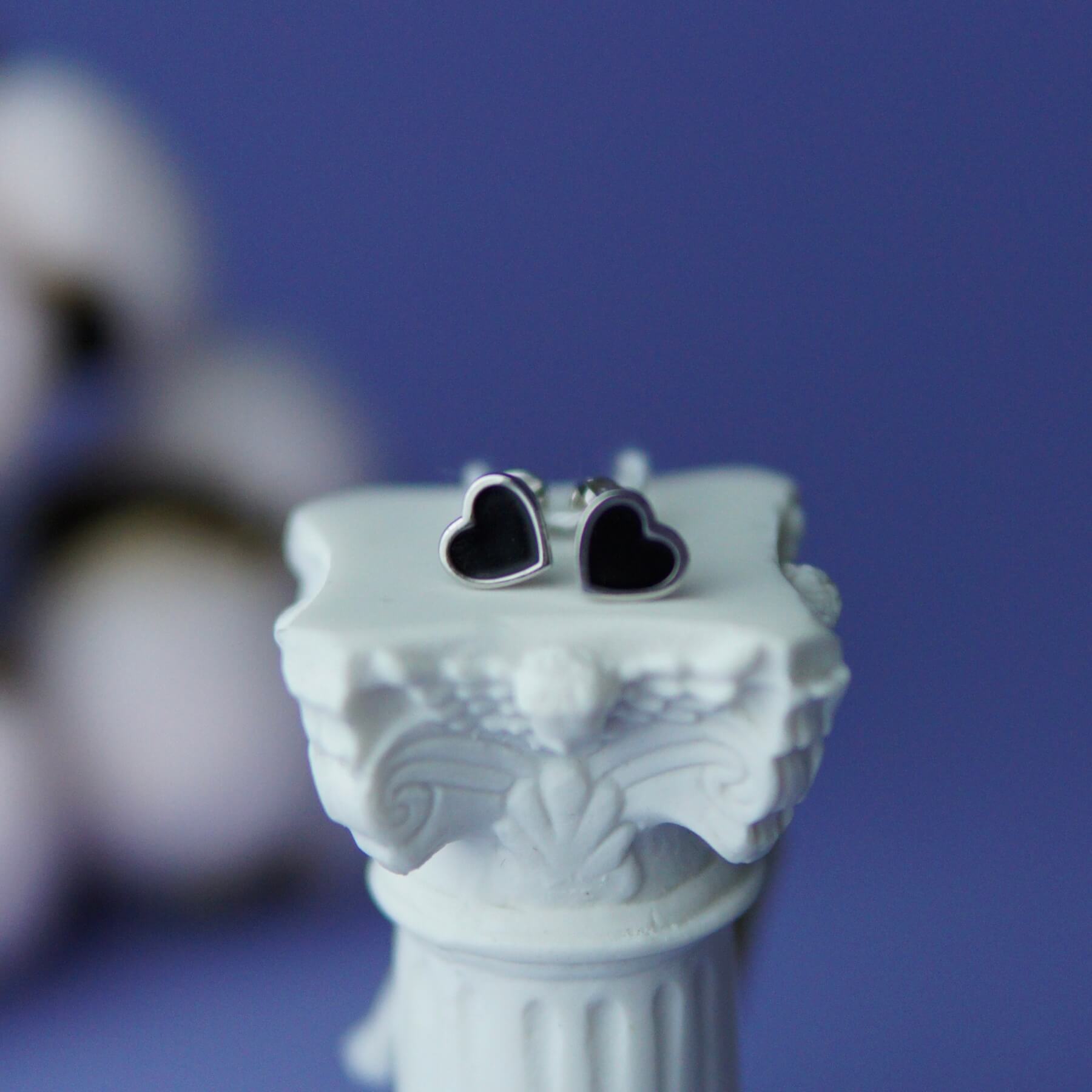 Срібні пусети чорні серця