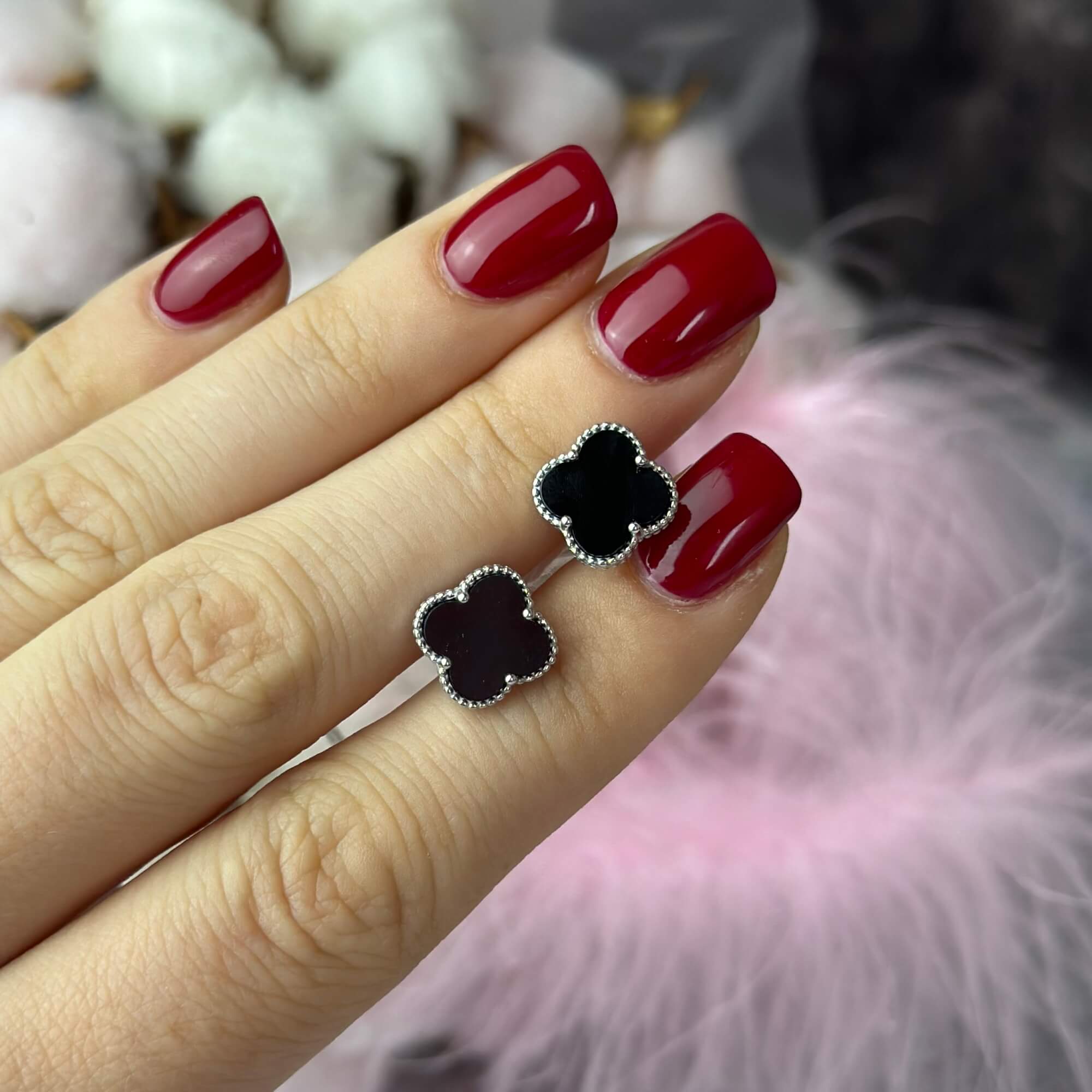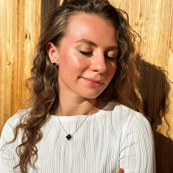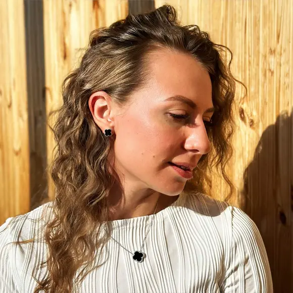 Дизайн пусетів нагадує знаковий чотирилисник – символ удачі, гармонії та жіночої грації. Завдяки своїй лаконічності та універсальності, вони чудово поєднуються як з повсякденними, так і з вечірніми образами. Камінці, які прикрашають сережки, додають їм розкішного сяйва, роблячи цей аксесуар ще більш привабливим.
