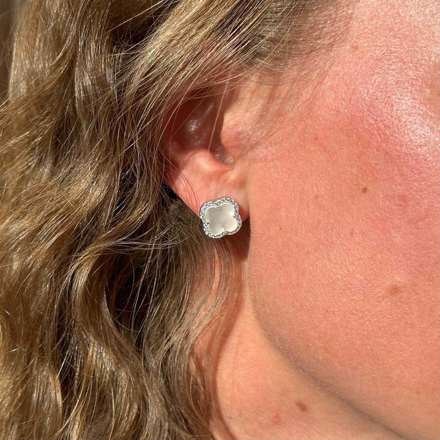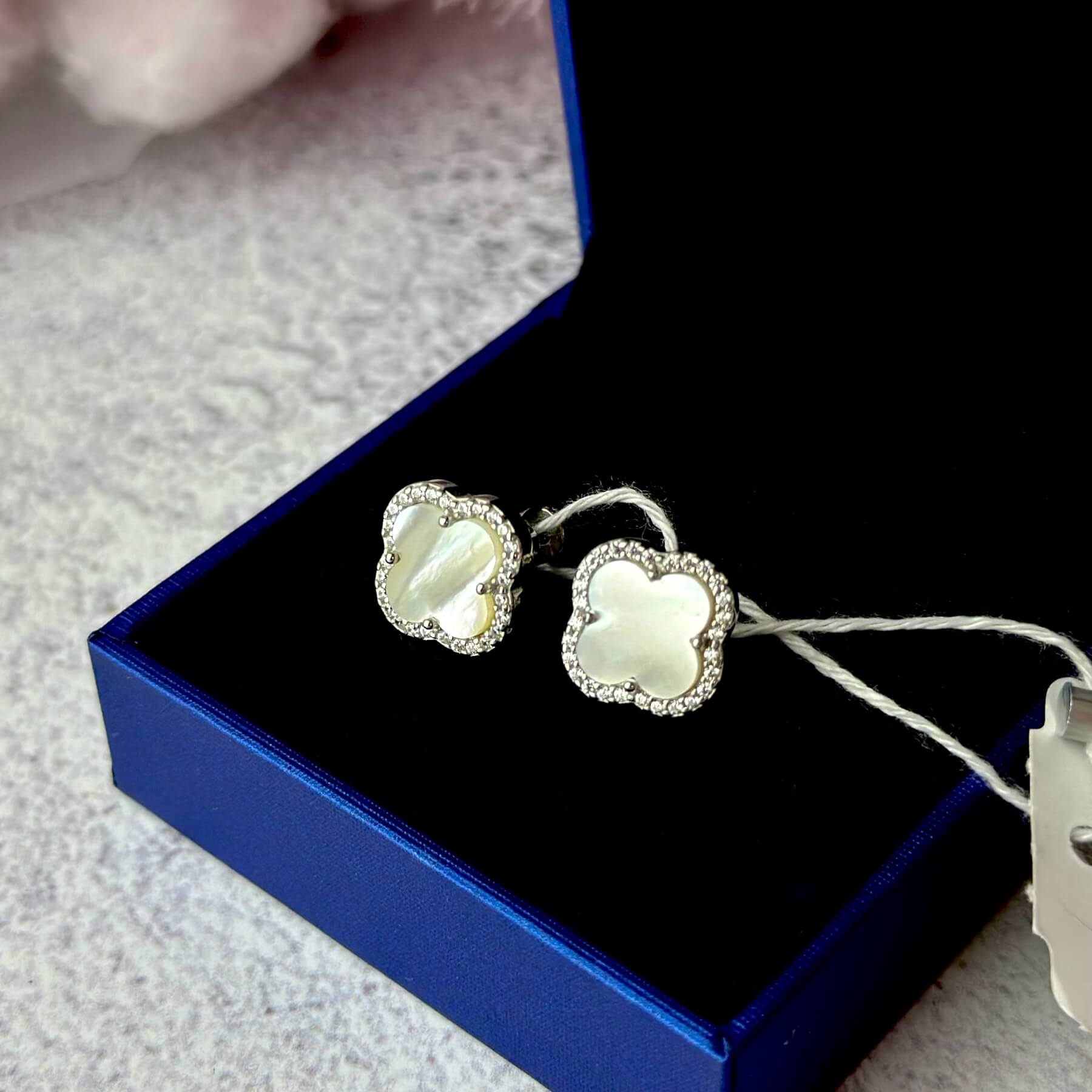 Срібні пусети Van Cleef із білим оніксом: розкішна класика в сучасному виконанні