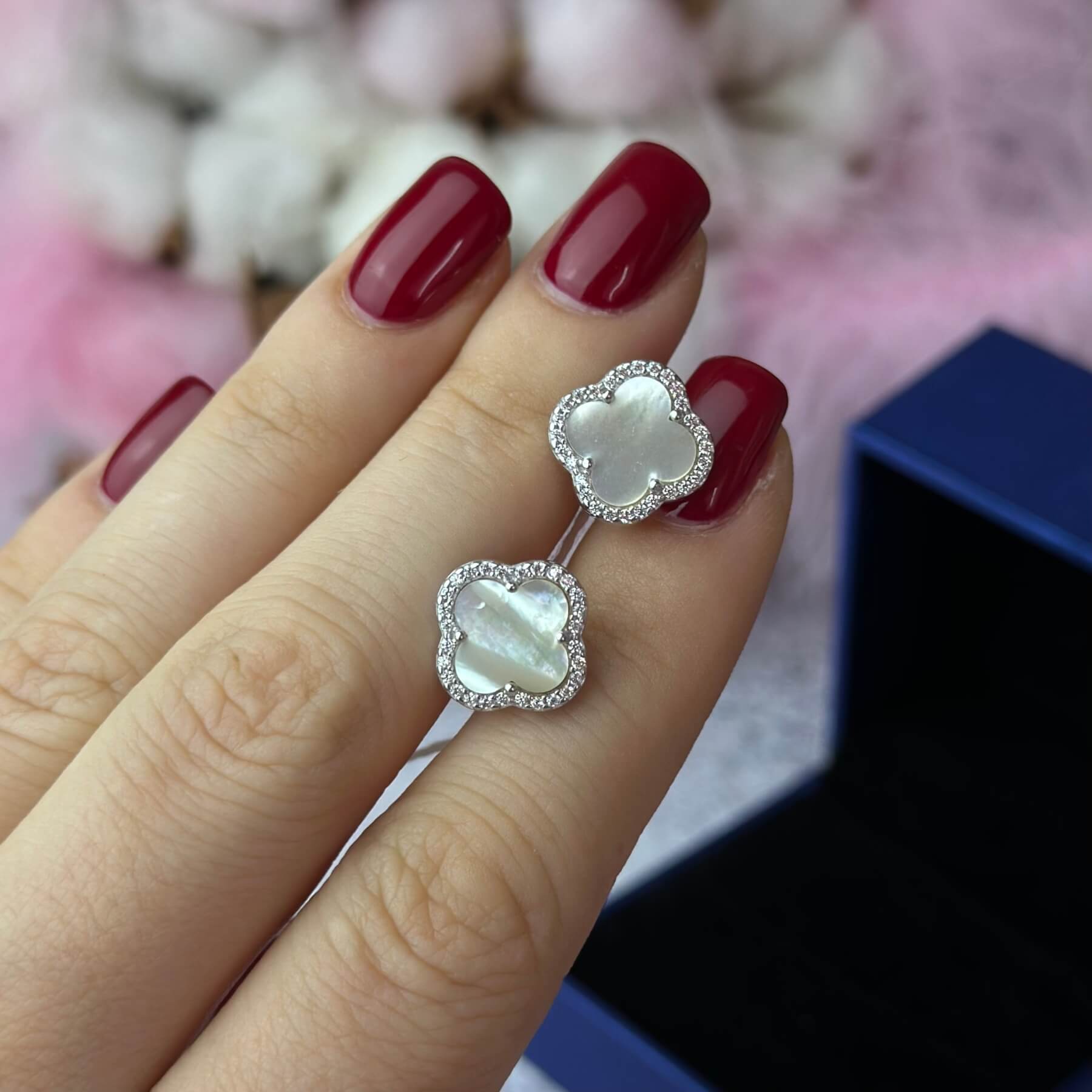 Срібні пусети у стилі Van Cleef із білим оніксом – це втілення елегантності та витонченості. Ці сережки поєднують у собі класичний дизайн із сучасним виконанням, що робить їх ідеальним вибором для будь-якого випадку. Вони надихають своїм мінімалізмом, гармонією форми та глибокою символікою.