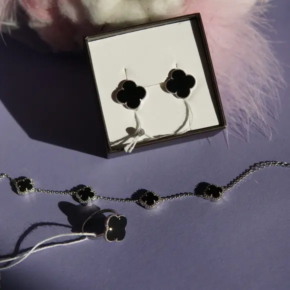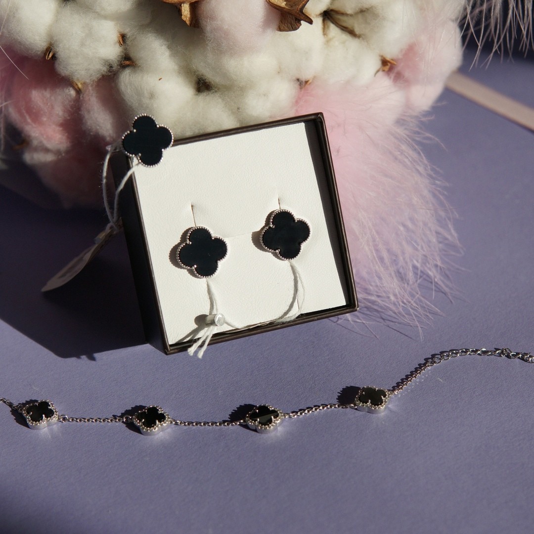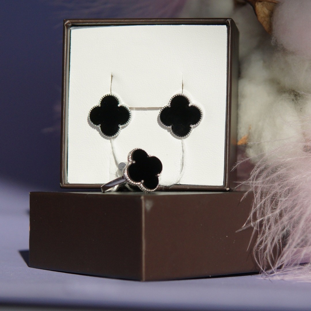 Виготовлені зі срібла 925 проби, сережки відзначаються ідеальною симетрією та чистотою форм. Кожен з листочків конюшини майстерно інкрустований оніксом, глибокий чорний колір якого чудово контрастує з яскравим блиском срібла. Такий класичний і водночас сучасний дизайн ідеально підходить для створення елегантного образу, який доречний як у повсякденному житті, так і для особливих подій.