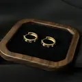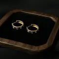 Сережки виготовлені зі срібла 925 проби й покриті шаром позолоти, що надає їм теплий золотистий відтінок. Характерні гравіювання-«заклепки» роблять дизайн впізнаваним і додають прикрасі статусності. Завдяки позолоті сережки виглядають розкішно, але водночас зберігають легкість і комфорт у носінні.