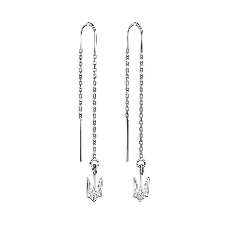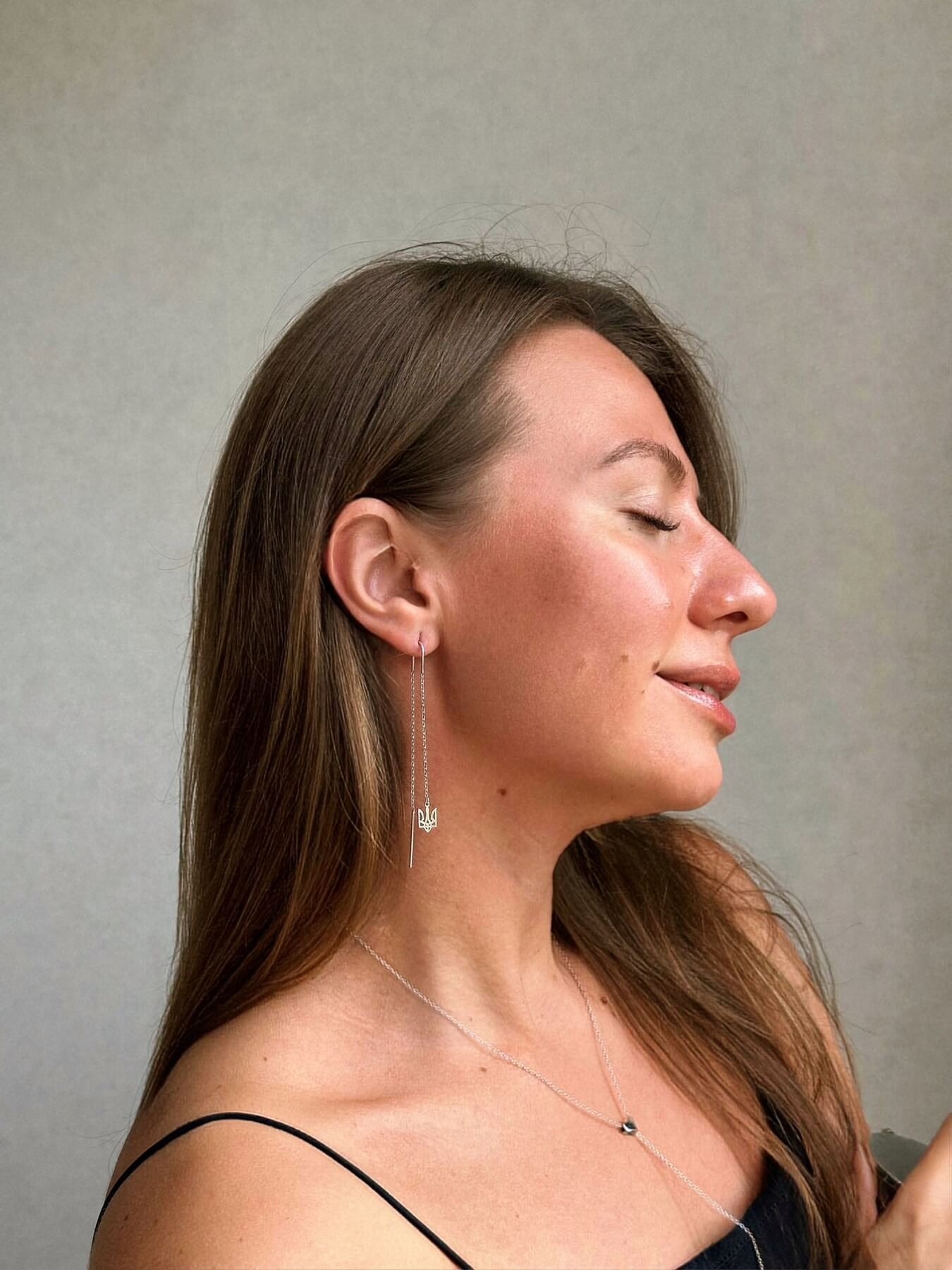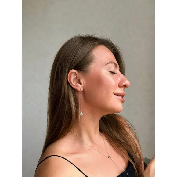 Дизайн та матеріали: Сережки-протяжки «Тризуб» виготовлені з високоякісного срібла 925 проби, яке забезпечує довговічність та стійкість до потемніння. Їх витончений дизайн підходить для щоденного носіння і особливих випадків, додаючи образу нотку патріотизму та стилю. Протяжки мають легку, делікатну форму, що дозволяє сережкам красиво спадати по лінії шиї, підкреслюючи жіночність та грацію їх власниці.