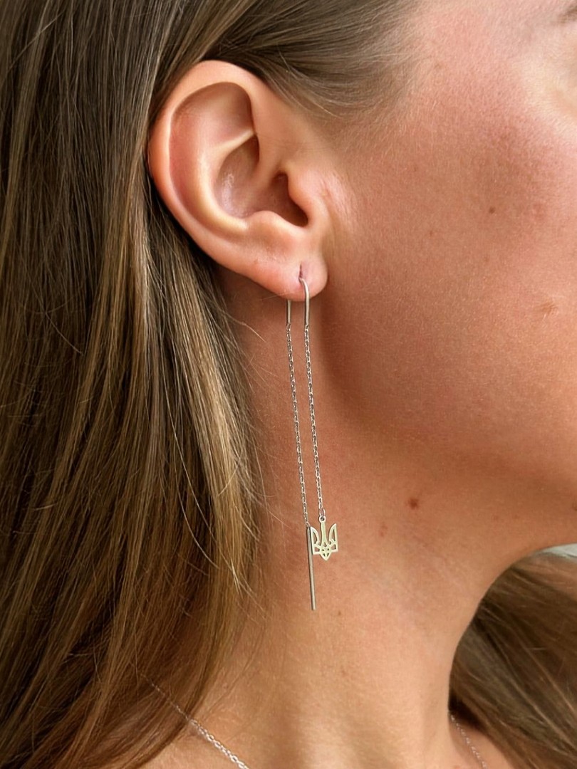 Заключні слова: Сережки-протяжки «Тризуб» – це не просто прикраса, це справжній символ сили, незалежності та патріотизму. Вони стануть чудовим доповненням до вашого ювелірного гардеробу, підкреслюючи вашу індивідуальність та відданість рідній країні. Вибираючи ці сережки, ви обираєте стиль, якість та національну гордість, яку можна носити щодня з великою радістю.