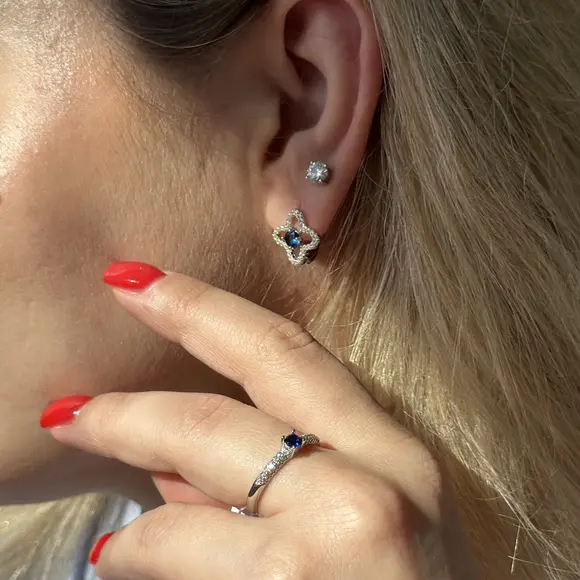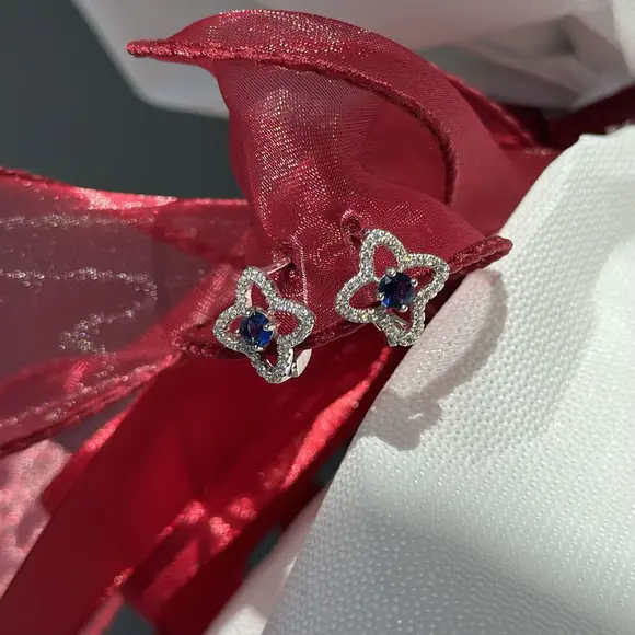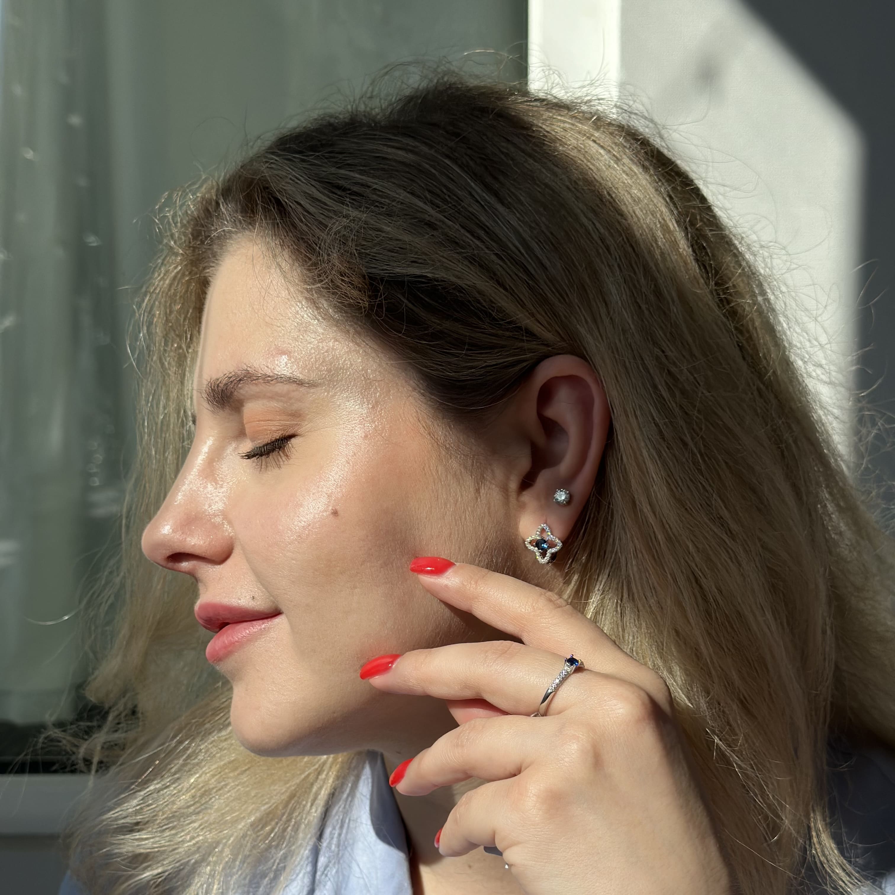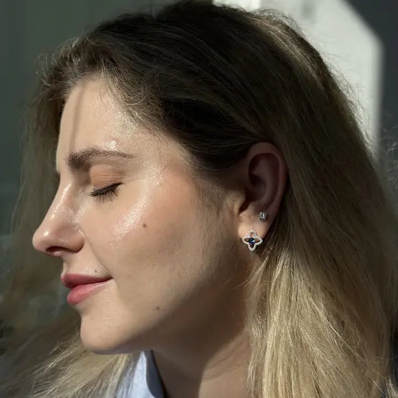 Срібні сережки в стилі "Louis Vuitton" з фіанітами