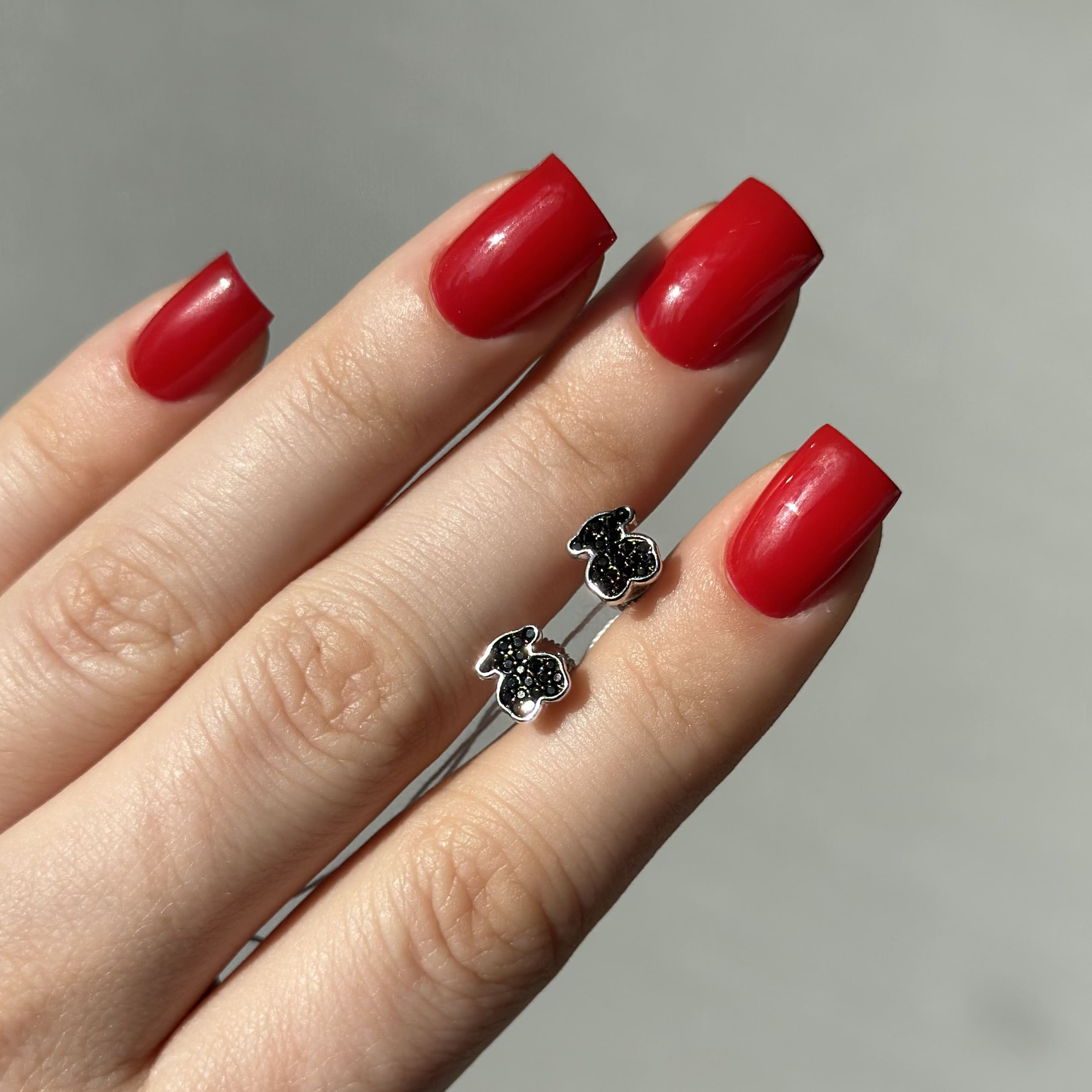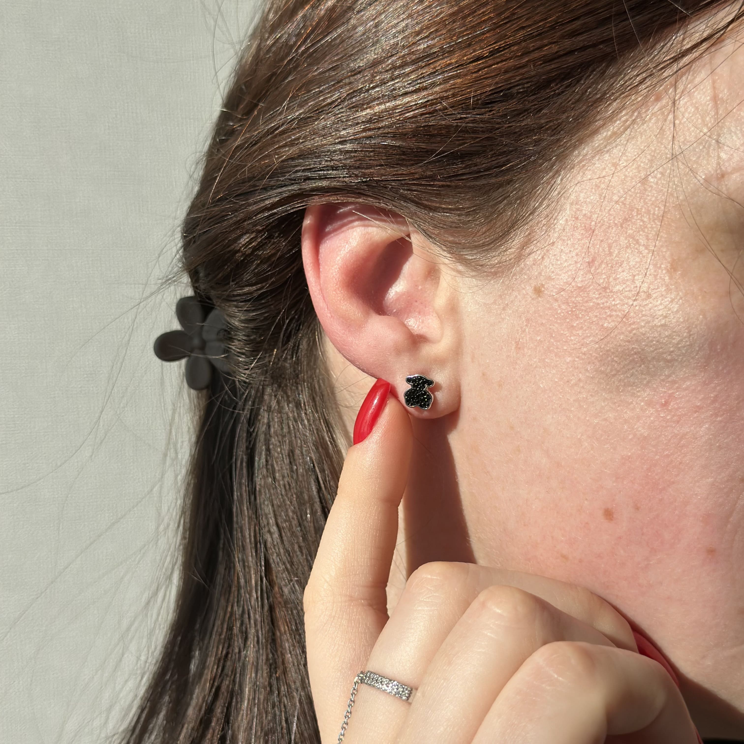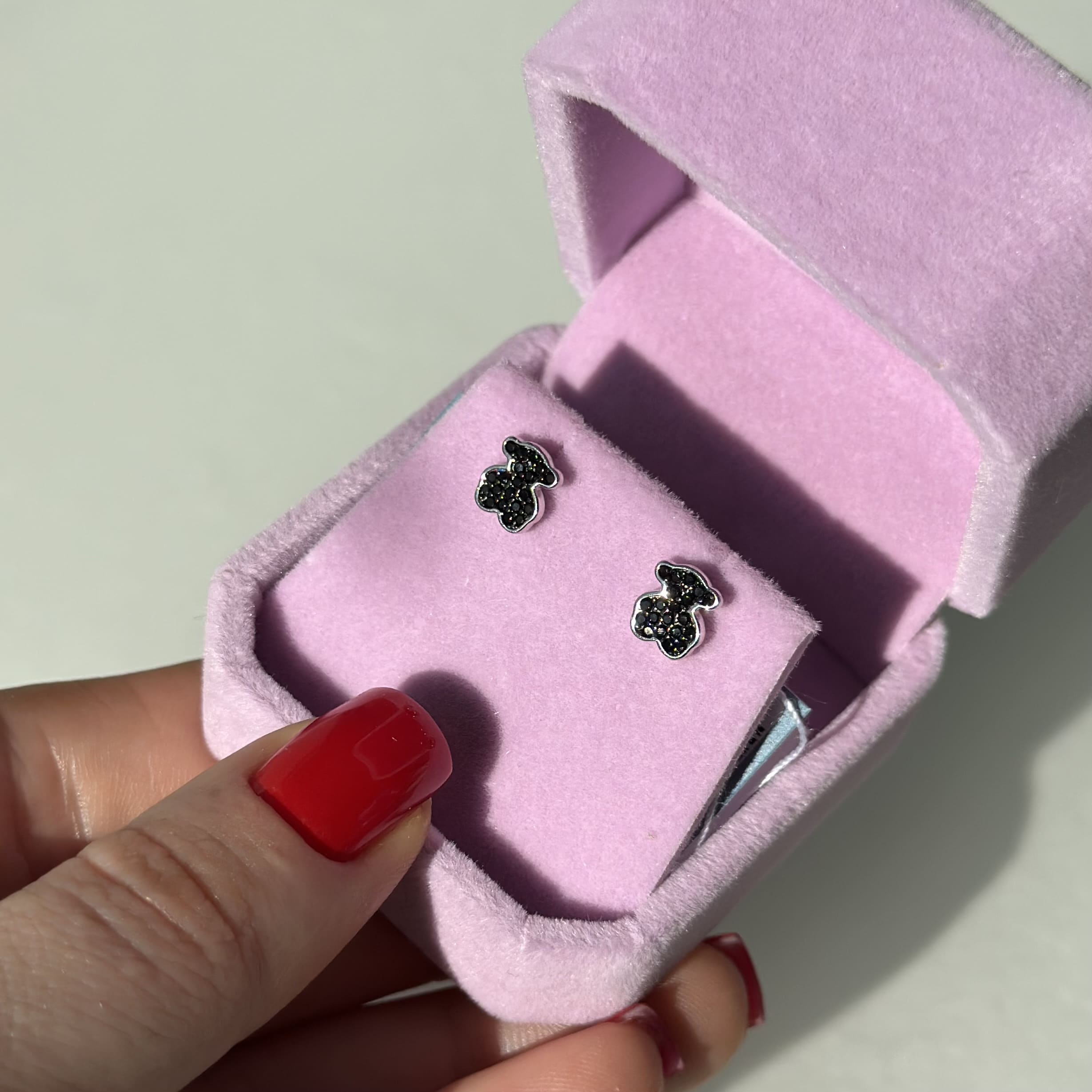 Срібні сережки в стилі "Tous" з чорними фіанітами