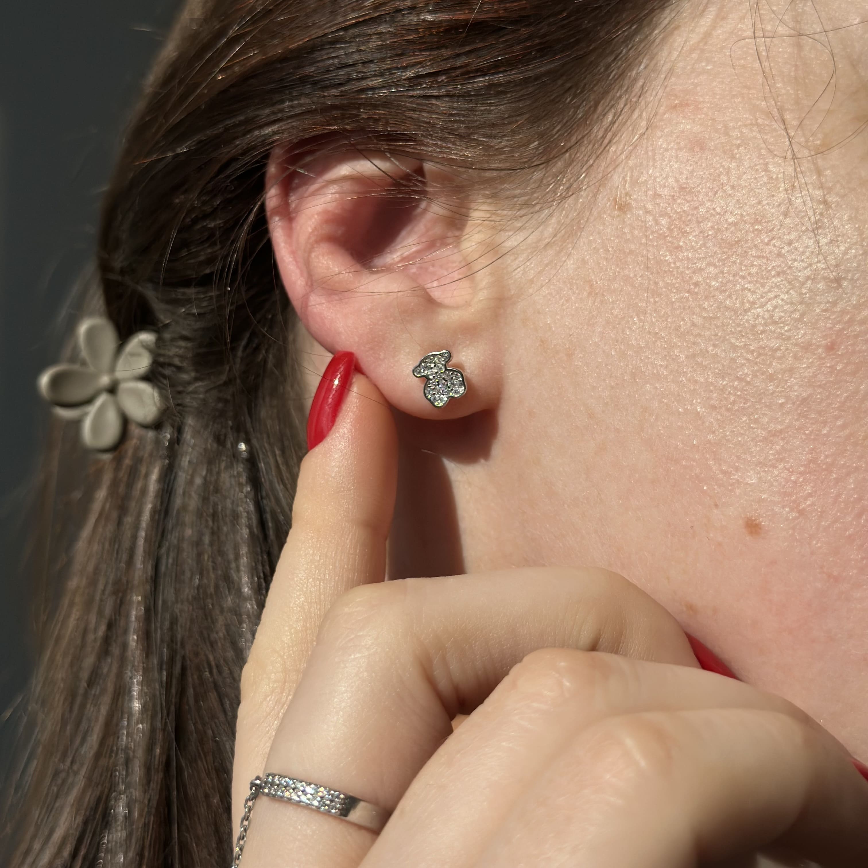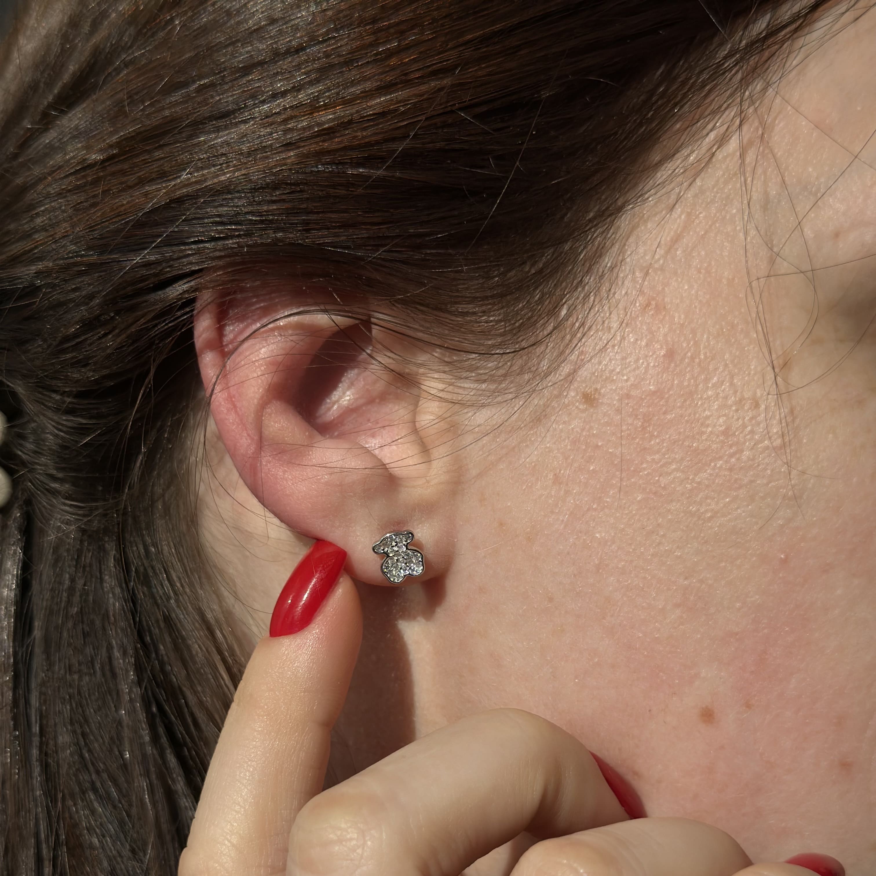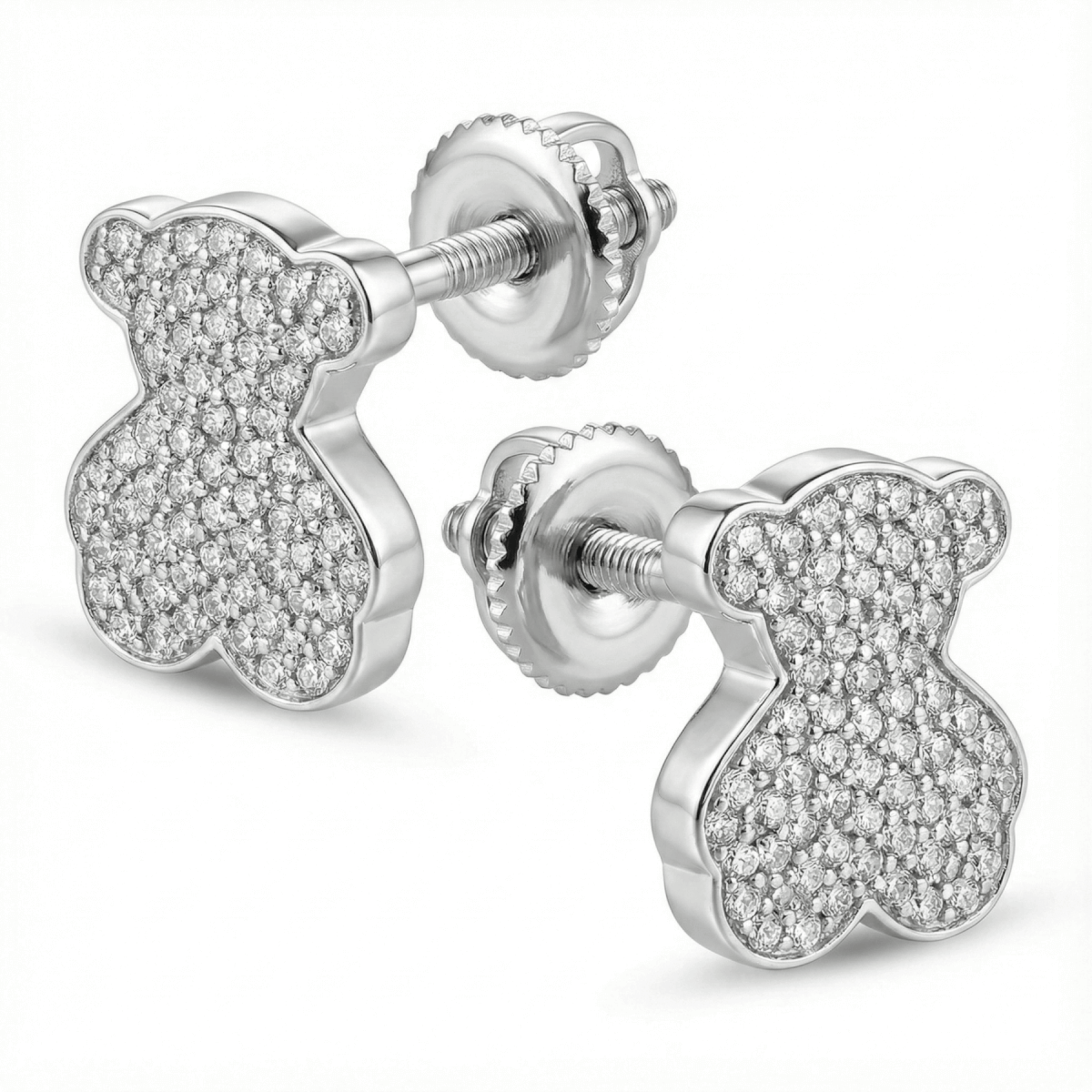 Срібні сережки в стилі "Tous" з білими фіанітами