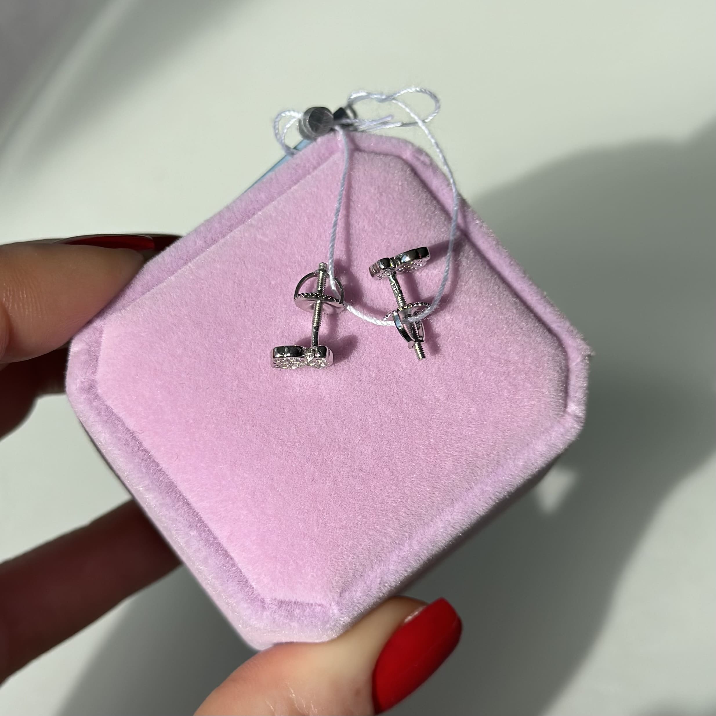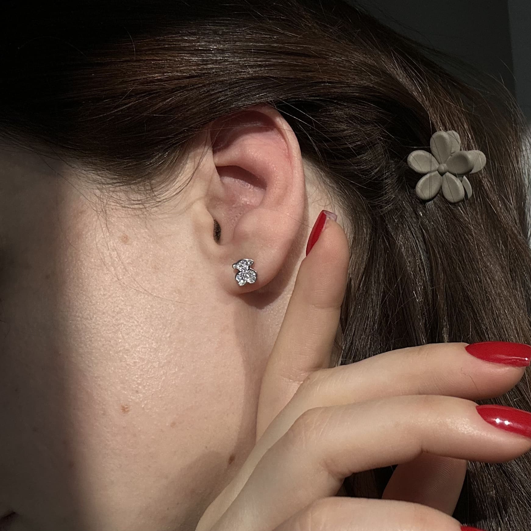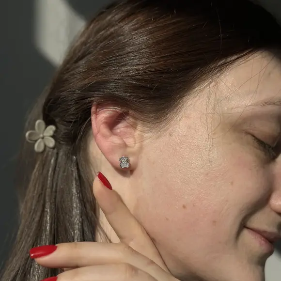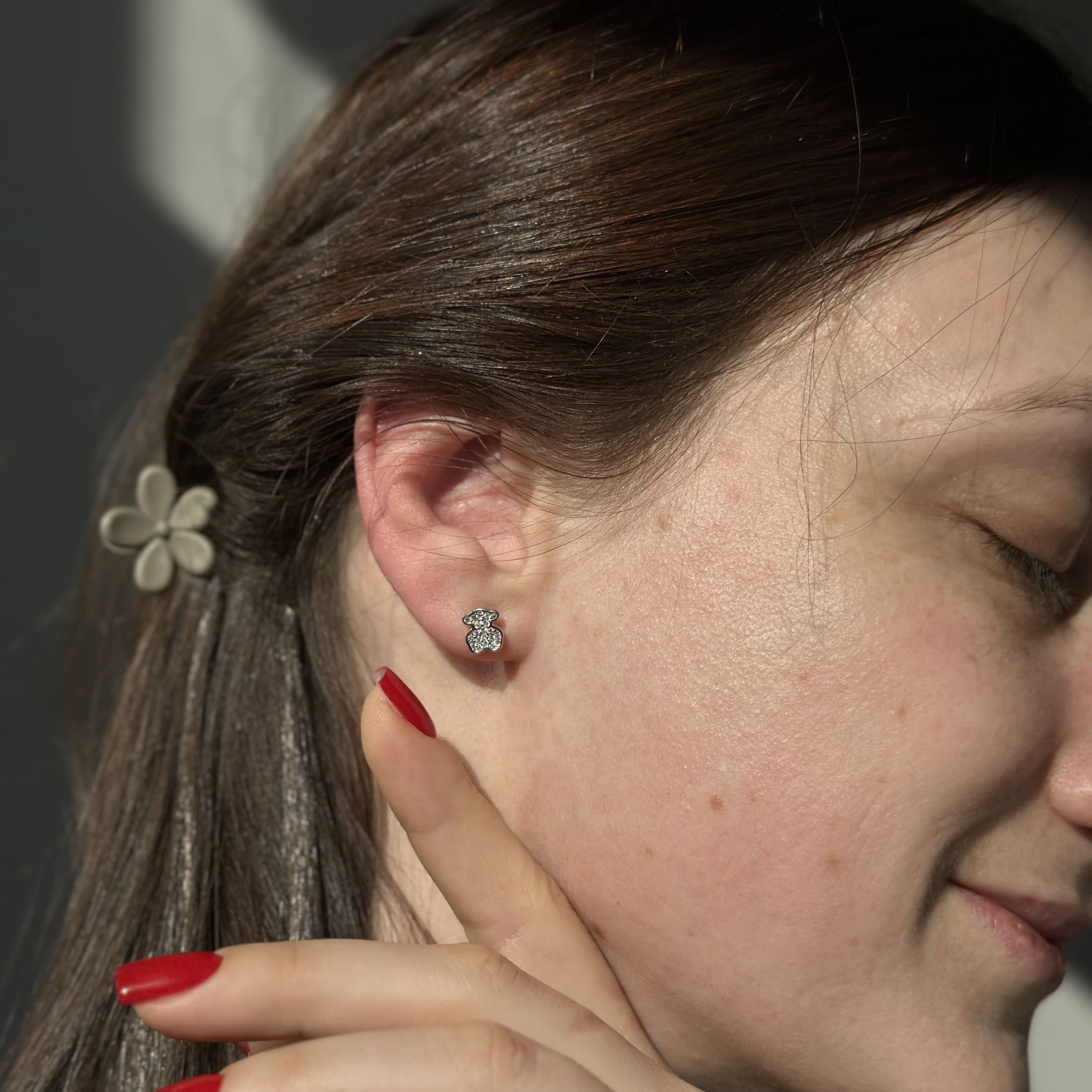 Срібні сережки в стилі "Tous" з білими фіанітами