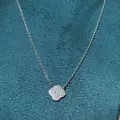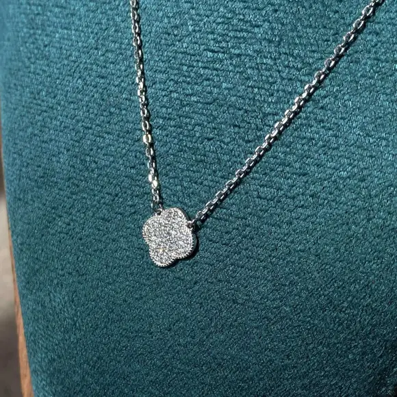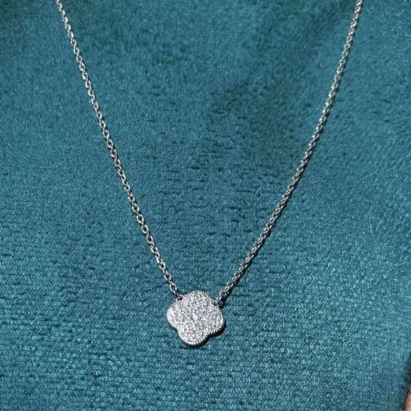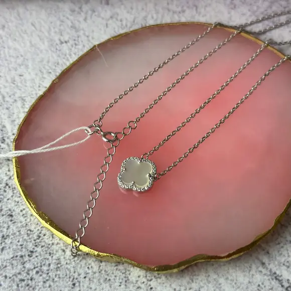 Срібний ланцюжок-кольє з перламутровою підвіскою у стилі Van Cleef — це прикраса, у якій поєднуються елегантність, ніжність і позачасова класика. Витончений дизайн із характерним квітковим мотивом робить це кольє універсальним акцентом, що легко вписується як у повсякденний, так і у святковий образ.